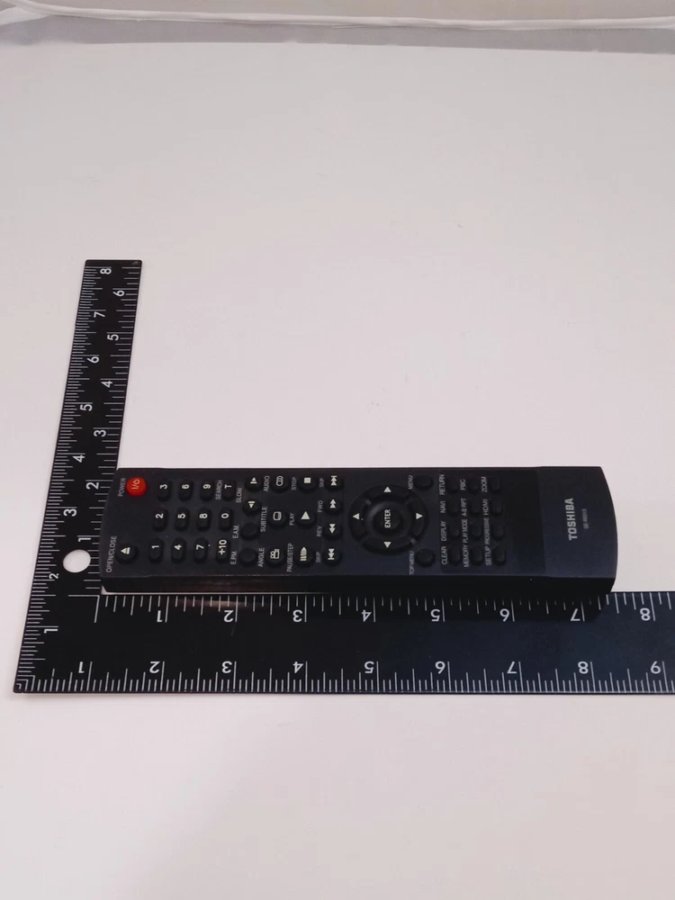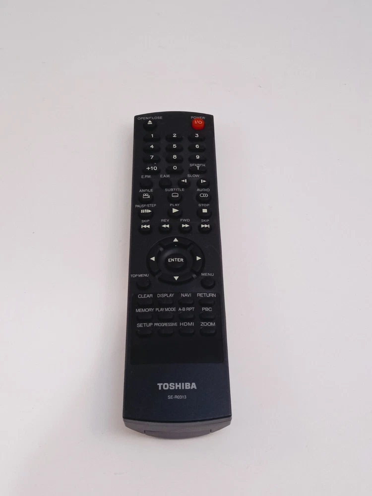 The product is an OEM Toshiba SE-RO313 Remote Control designed for use with Toshiba TV and DVD players. It is black in color, wireless, and has been tested to be in working condition. This unit is suitable for use with Toshiba devices and is manufactured in China.