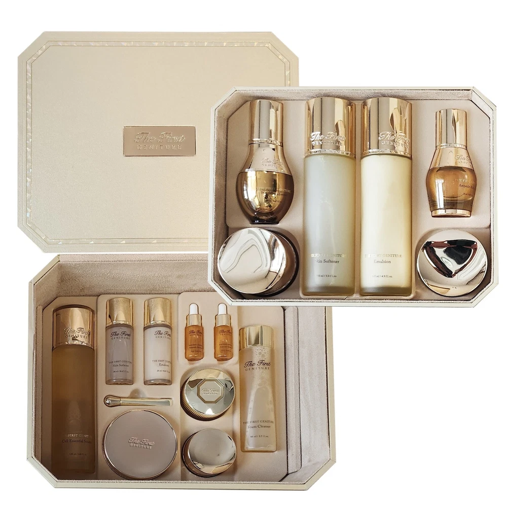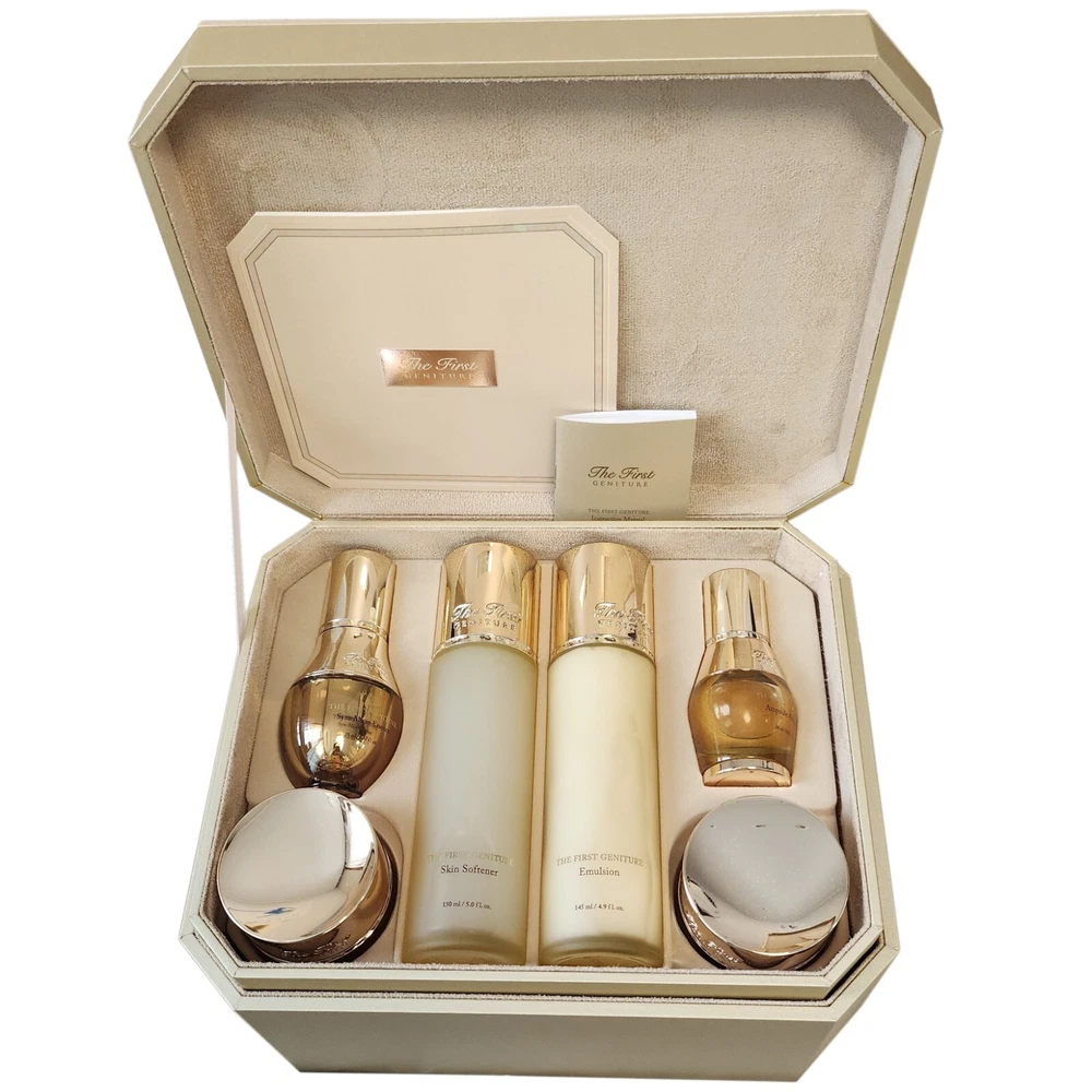 OHUI The First Geniture Firstige Full Line Skin care Set Skin Type : All Skin Types Made in Korea This special skin care line invigorates lifeless skin for optimal anti-aging effects with patented Stem Cell Technology from the world-renowned CHA Biotech, a global research institute for stem cell research and LG Household and Health Care. Combined with skin metabolism stimulants like royal jelly, EGF and FGF, this essence boosts collagen production to enhance tissue repair and cell regeneration while increasing density and elasticity to aging skin to help restore youthful and healthy complexion full of energy. Contians The First Geniture Skin Softener 5.0 oz. / 150mL The First Geniture Emulsion 4.8 oz. / 145mL The First Geniture Cell Essential Source 4.0 fl.oz / 120mL The First Geniture Ampoule Advanced 0.67 oz. / 20mL The First Geniture Sym-Micro Essence 0.67 oz. / 20mL The First Cream Intensive 1.0 oz. /30mL The First Geniture Eye Cream 0.85 oz. / 25mL Ampoule Cover Cushion #01 15g ** The gift may be changed to another specification of the same level according to Brand's circumstances. The First Geniture Ampoule Advanced 5ml x 2ea The First Geniture Skin Softene r 20mL The First Geniture Emulsion 20mL The First Diadein Solitaire Cream 8mL The First Geniture Eye Cream 5mL The First Geniture Foam Cleanser 80mL --------------------------------------------------------- * Shipping Your order will be dispatched within 2-3 working days of receiving payment (Monday-Friday). In the very unlikely event that your item is lost or damaged during post, then WE are responsible and will issue either a full refund or replacement. All products made in Korea will be shipped by Korea Post. Your address will not be changed after shipment and should be pay attention of correct address before placing order. Shipping period 1. Standard int'l Shipping ( Tracking No. available ) Delivery time 5-15 days : Asian countries 7-25 days : U.S.A North America 10-30 days : European and other countries 2. Expedited int'l Shipping ( Tracking No. Available ) Delivery time 4-7 days : Most of all countries The duration does not include weekends and can be changed depending on other potential delays such as custom clearance. * Customs and Duties Import duties, Taxes, and hidden charges are not included in the item price or shipping cost. These charges are the buyer's responsibility. We are not responsibility of any tax to clear customs but will try to help ship U.S.A and European countries. * Return You can return your purchase for a refund or an exchange for any reason within 15 days after receipt of your shipment. Please note that the item must be returned in its original condition, not worn or not used. All return shipping charges must be paid for by the buyer. If the item you received was wrong or defective we will pay for shipping charges. Please contact us prior to shipping the item back. * Contact us If you have any questions or any special comments, please contact us via eBay messaging. We will do our best until you are satisfied. We truly appreciate your cooperation.