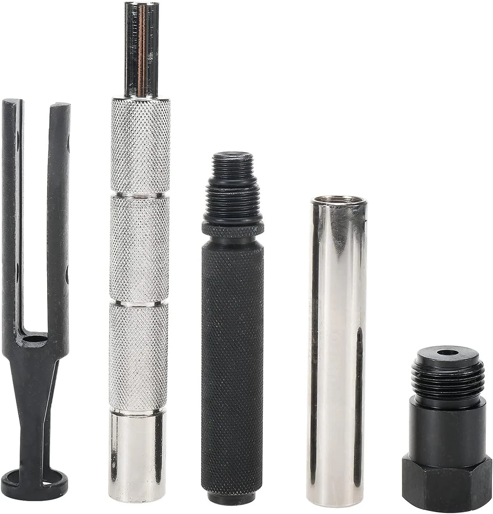 Cylinder Head Service Kit Valve Spring Compressor Removal Installer OHV OHC Compressor Tool Set The cylinder head service tool set is for installation and removal of the valve spring, without removal of cylinder head from the engine The tool slides along the discharge shaft to more quickly disassemble and compress the valve spring of the vehicle. Tool bolts to the head while the lever pivots from the base to compress the spring Knurled ends on the adapters, handles and sockets give you maximum grip in oily conditions. It allows the removal of stem oil seals squarely and without damage to the springs The cylinder head service tool set fit for 8 16 and 24 valve engines, suitable for most foreign and domestic cars Valve Spring Compressor Removal Tool is made of sturdy material for greater durability, which can provide greater durability and maintains tool stability in every high-intensity job.