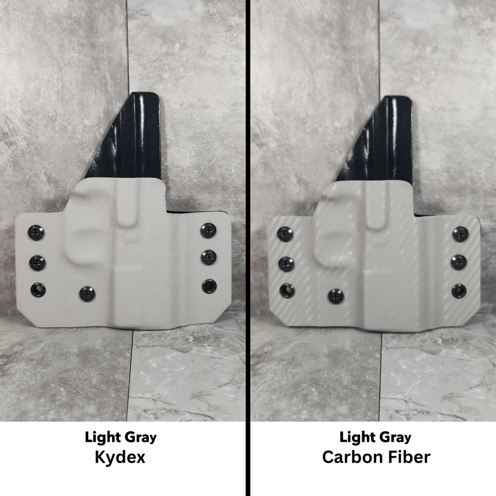 Your holster may look different than what is shown. The concept will be the same as shown. All Holsters will be cut Optics ready regardless of sweat guard option. Holster will have a black kydex back regardless of color option. If you would like one of our colors other than black just add it to the seller notes. Example (Coyote Brown Kydex) or (Coyote Brown Carbon Fiber) The flashlight is required for all flashlight holsters. (Please Note a Glock 30 SF will not fit in our Glock 30s holster) More Models Coming Soon. Made in the USA Built to order Lifetime Warranty Free Shipping to the lower 48 only Return Policy Our return policy is designed to make your shopping experience as easy and stress-free as possible. If you are not completely satisfied with your purchase, you may return it within 30 days of the item received date (Customer pays for return shipping). The item must be in its original condition and packaging. We will issue a full refund for the item. Please contact us to initiate the return process.