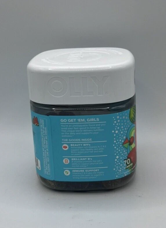 OLLY Teen Girl Multi 70 Gummies Berry Melon FREE SHIPPING! BUY NOW! About this item OLLY TEEN GIRL MULTIVITAMIN: This delicious little gummy packs in a vibrant blend of nutrients to help girls feel their best, shine their brightest and keep on playing hard*. THE GOODS INSIDE: Teen Girl Multi serves up key vitamins & minerals to nourish with biotin and antioxidants* HOW TO TAKE: Chew two gummies, no food or water needed. DELIGHTFULLY TASTY: Strawberry Melon Besties flavor with other natural flavors and no synthetic colors or flavors A DELIGHTFUL PART OF YOUR DAILY ROUTINE: OLLY Teen Girl supplements are tasty gummies formulated with a unique blend of nutrients that supports your wellness and helps you take on your day.*