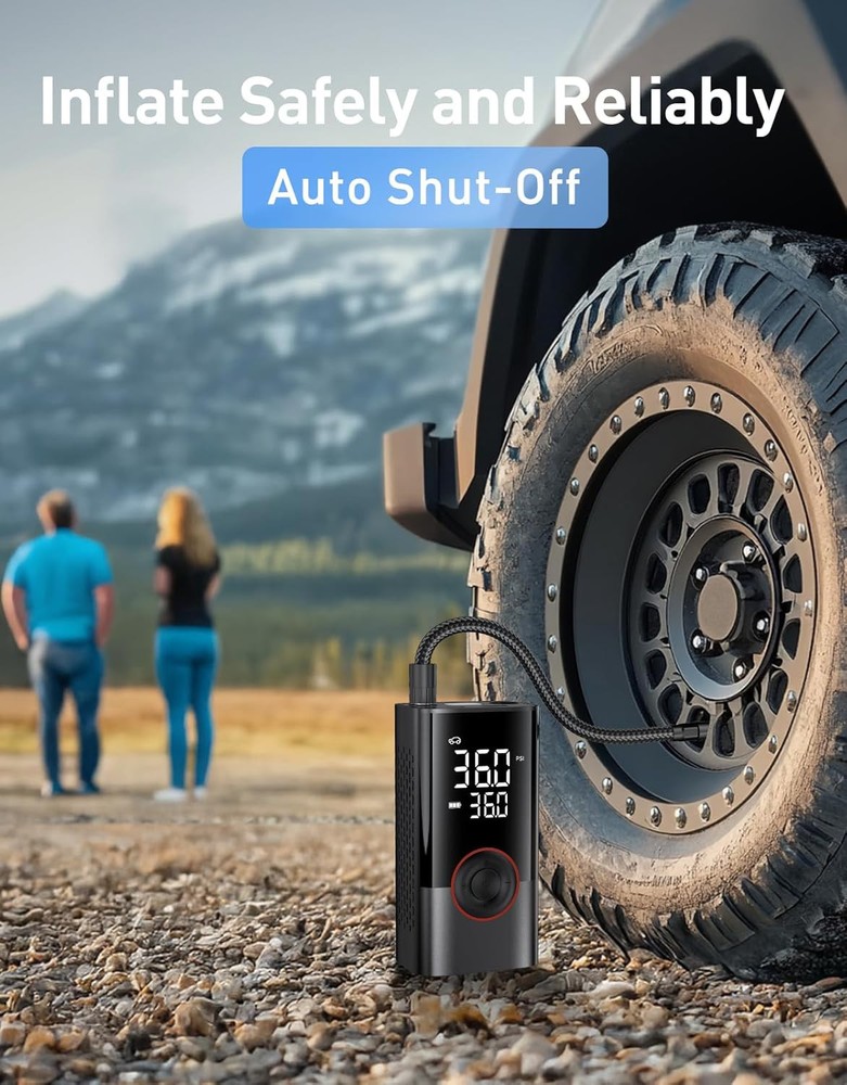 OMQ Tire Inflator Portable Air Compressor, 150PSI Smart Pump for Black Product Features 40 S Faster Inflation: This portable tire inflator can inflate your car tire from 30 to 36 PSI in 40 seconds, ensuring you spend less time waiting and more time driving, so you can get back on the road in no time 10000 mAh Battery: This tire inflator portable air compressor equipped with a 10000 mAh rechargeable battery, our tire inflator provides enough power to handle multiple tires on a single charge. Perfect for long drives or daily commutes Auto Shut-Off for Safety: The tire air compressor is designed with an automatic shut-off feature that prevents over-inflation by stopping the air pump when the preset pressure is reached, ensuring safe use for both car tires and bike tires 5 Modes: This electric air compressor for car tires includes four preset modes for cars, motorcycles, bicycles, and sports balls, as well as a manual mode for customized inflation, making it the perfect portable air compressor for all your inflation needs Type-C Charging, Power Bank, LED Light: This tire inflator portable air compressor charges quickly using Type-C for efficient recharging. It also serves as a power bank. The LED light features three modes, including SOS and Strobe, making it an essential air pump for car tires, bikes, motorcycles, and more. Shipping: Shipping is complimentary within the lower 48 US States. We Do Not Ship to PO/APO Boxes, HI or Alaska We Do Not Ship Outside of the Continental US All items ship within 24-72 hours of Payment For large items that require Freight shipping a valid phone number is required to call and schedule your delivery Terms of Sale and Feedback: Feedback is extremely important to us and eBay If you are satisfied with our transaction, please take a moment to leave Positive Feedback. YOUR Satisfaction is our #1 Priority! If there are any issues, PLEASE contact us BEFORE leaving a neutral or negative rating so that we may resolve any concerns. We PROMISE we can make you happy if you give us a fair chance. Returns / Concerns: All items qualify for returns within 14 - 30 days of receipt. Buyer is responsible for return shipping on any item that is not damaged Please be sure this is an item you want before making your purchase. Customer Satisfaction is our TOP priority! All items are IN STOCK at time of listing. Inventory on eBay changes constantly and it is impossible to maintain a perfectly accurate count of all items. Please do not penalize us if we have to issue you a refund! Thank You For Your Business!