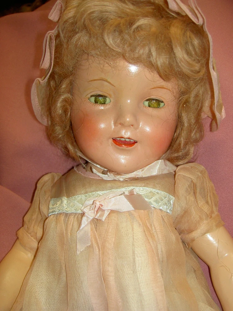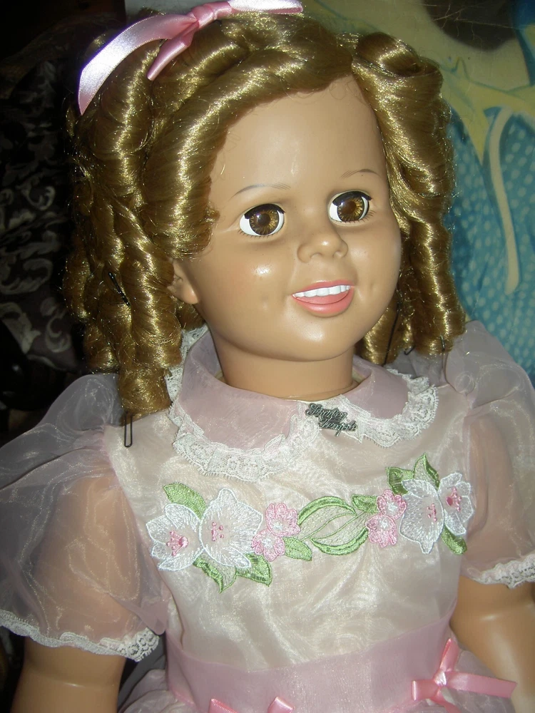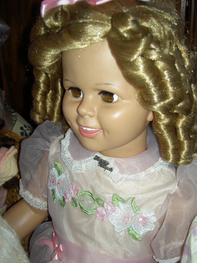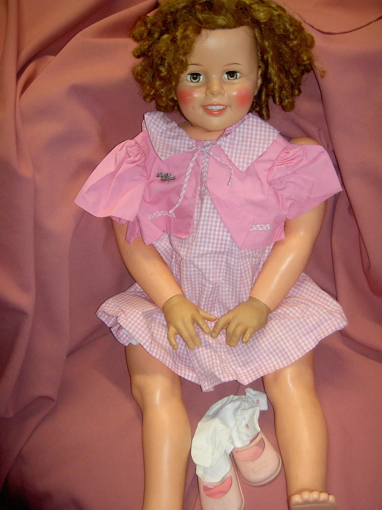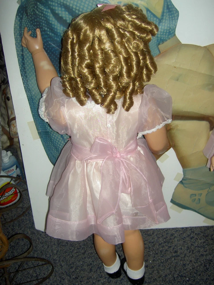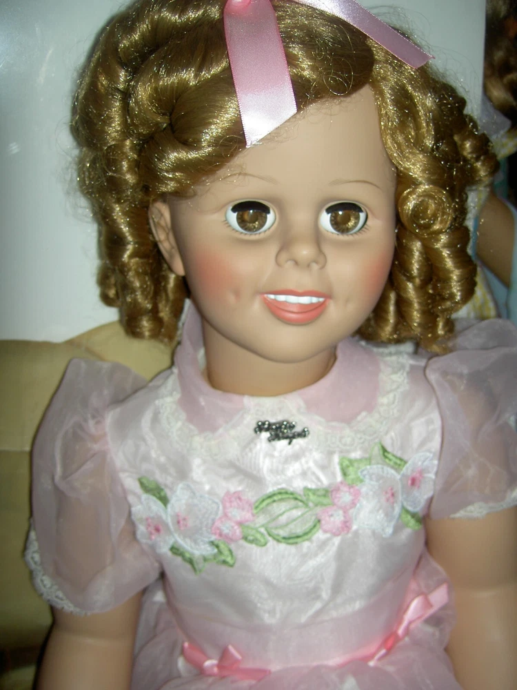Lights, Camera, Action! This listing is for ONLY the ONE, vintage Shirley Temple doll wearing her complete original outfit and a dream come true for collectors of dolls and movie memorabilia. (shown in the first few photos only*) This 35" doll produced in a Limited-edition Series features curly blonde rooted hair in long ringlets, pink satin hair ribbon, sparkling clear, hazel brown sleep eyes, perfect eyelashes, dimples, an open/closed mouth showing her teeth, pretty cheek blush and light complexion with joints at her shoulders and hips and a swivel neck for posing. She wears her original undergarments, shoes and socks beneath her pretty pink party dress with Shirley Temple doll pin and attached petticoat for all occasions . The doll is an original, signed piece (on the back of her neck) from Danbury Mint brand and is made of heavy vinyl material and weighs about 10 lbs. requiring over-size shipping. And any excess postage will be cheerfully refunded. She has no damages or repairs, no stains or fading, and no odors as she is from a smoke free home. Thanks for visiting, * Don't forget to check out our other Shirley Temple dolls and movie poster, listed separately, as shown in the rest of the photos, NOT included in this listing. Please note: nearly all of our ite ms are antique or vintage (usually with some signs of wear due to usage and previous storage). We do our very best to describe and photograph them for you and do not repair, restring, repaint or enhance them in any way as most collectors prefer to find them in their original state. Please study the many photographs as they are an important part of the description as there are no returns, refunds or exchanges. Let us know if we can help you with anything else. We have many more vintage doll clothes patterns, antique and vintage dolls and toys, dollhouse furniture and antique dollhouse dolls available, each listed separately. Please also visit our constantly updated Ebay store! Wishing you all a great treasure hunting. Please stop back often and be sure to add me to your favorites list so that you will receive our twice monthly newsletter and be among the first to find our next ebay treasures . We welcome your inquiries and gladly combine purchases to save you shipping costs and help stretch your "dolly budget". There is never a handling or packing fee. We do our best to describe our items well and want you to be happy with your purchase although we value everyone's unique set of values. We appreciate five-star reviews. We charge only the actual shipping costs (often less) and are deeply committed to giving every customer a "five-star" experience as we want to earn your business and become your first source for fine antique dolls and toys. If you are happy with your purchase, please leave us positive feedback and we will gladly return the favor. If there is a problem with your item, please let us know PRIOR to leaving feedback and we will do our best to make sure you are satisfied. You can also pay for your item (even if you don't have a PayPal account) by charging it through PayPal to any major credit card ! We recommend insurance on all your purchases. Proud to be a part of Ebay's 25 year Sellerbration