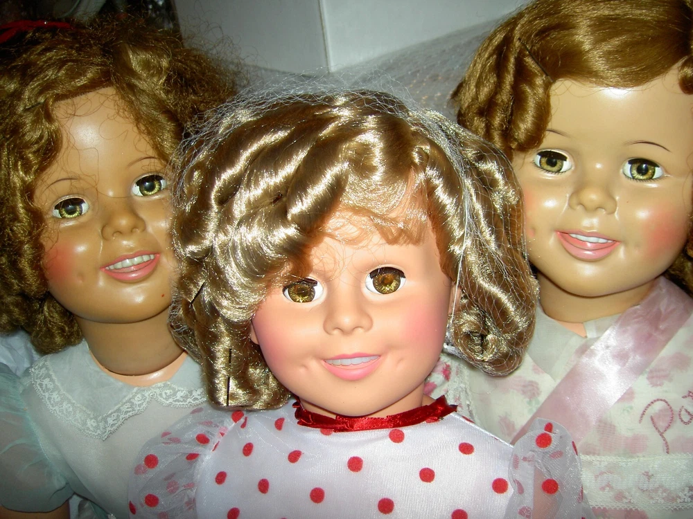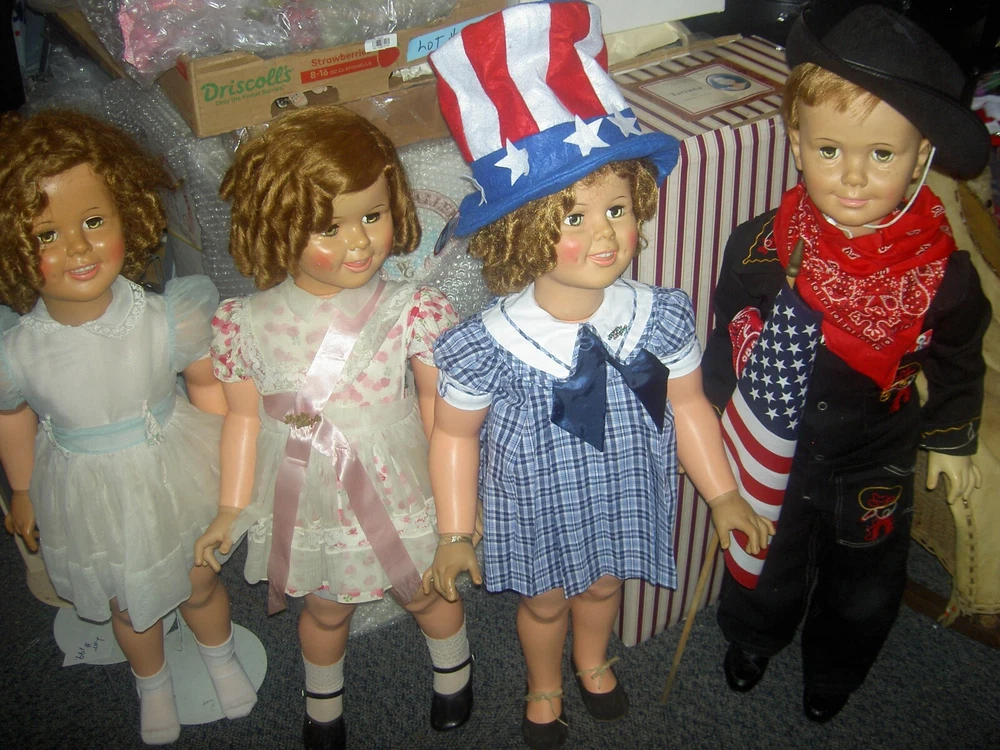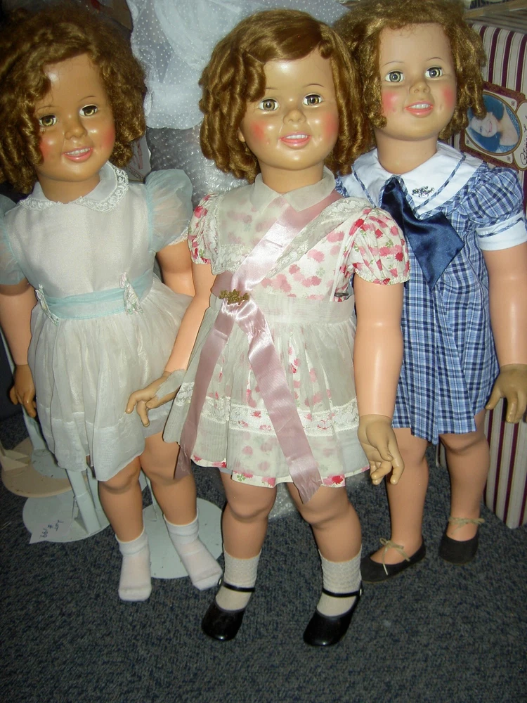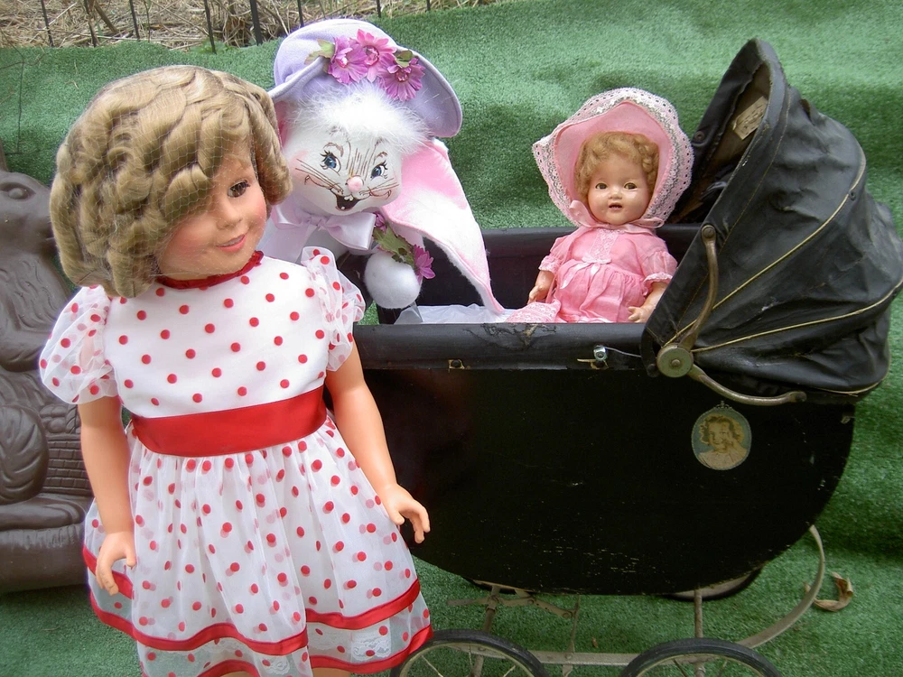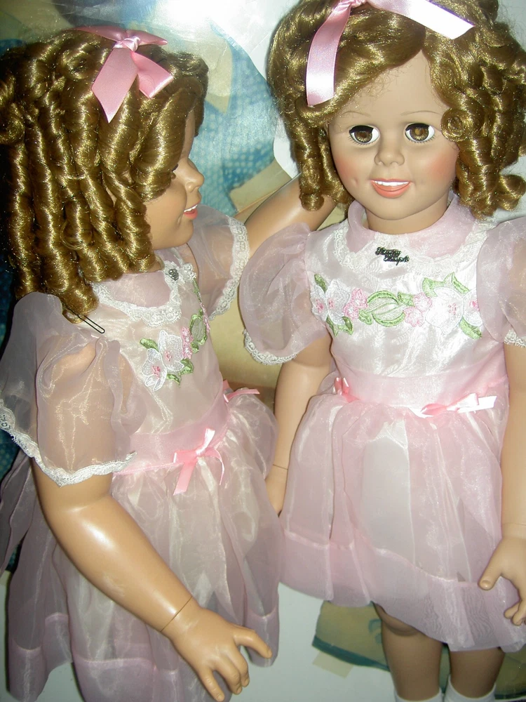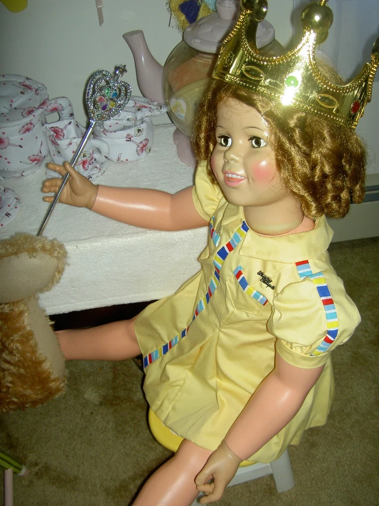 Lights, Camera, Action! This listing is for ONLY the ONE, vintage Shirley Temple doll wearing her complete original outfit and a dream come true for collectors of dolls and movie memorabilia. (shown in the first few photos only*) This 35" doll produced in a Limited-edition Series features curly blonde rooted hair in long ringlets, pink satin hair ribbon, sparkling clear, hazel brown sleep eyes, perfect eyelashes, dimples, an open/closed mouth showing her teeth, pretty cheek blush and light complexion with joints at her shoulders and hips and a swivel neck for posing. She wears her original undergarments, shoes and socks beneath her pretty pink party dress with Shirley Temple doll pin and attached petticoat for all occasions . The doll is an original, signed piece (on the back of her neck) from Danbury Mint brand and is made of heavy vinyl material and weighs about 10 lbs. requiring over-size shipping. And any excess postage will be cheerfully refunded. She has no damages or repairs, no stains or fading, and no odors as she is from a smoke free home. Thanks for visiting, * Don't forget to check out our other Shirley Temple dolls and movie poster, listed separately, as shown in the rest of the photos, NOT included in this listing. Please note: nearly all of our ite ms are antique or vintage (usually with some signs of wear due to usage and previous storage). We do our very best to describe and photograph them for you and do not repair, restring, repaint or enhance them in any way as most collectors prefer to find them in their original state. Please study the many photographs as they are an important part of the description as there are no returns, refunds or exchanges. Let us know if we can help you with anything else. We have many more vintage doll clothes patterns, antique and vintage dolls and toys, dollhouse furniture and antique dollhouse dolls available, each listed separately. Please also visit our constantly updated Ebay store! Wishing you all a great treasure hunting. Please stop back often and be sure to add me to your favorites list so that you will receive our twice monthly newsletter and be among the first to find our next ebay treasures . We welcome your inquiries and gladly combine purchases to save you shipping costs and help stretch your "dolly budget". There is never a handling or packing fee. We do our best to describe our items well and want you to be happy with your purchase although we value everyone's unique set of values. We appreciate five-star reviews. We charge only the actual shipping costs (often less) and are deeply committed to giving every customer a "five-star" experience as we want to earn your business and become your first source for fine antique dolls and toys. If you are happy with your purchase, please leave us positive feedback and we will gladly return the favor. If there is a problem with your item, please let us know PRIOR to leaving feedback and we will do our best to make sure you are satisfied. You can also pay for your item (even if you don't have a PayPal account) by charging it through PayPal to any major credit card ! We recommend insurance on all your purchases. Proud to be a part of Ebay's 25 year Sellerbration