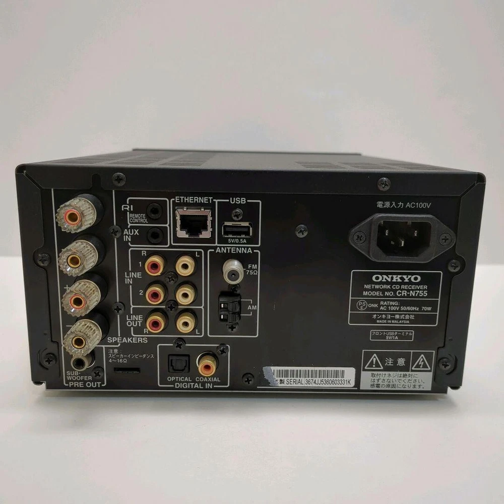 ONKYO CR-N755 amplifier receiver CD Player includes remote control Japan Description Appearance; Appearance is beautiful. If you want to know more details of condition, please feel free to contact me. Shipping I send a product by airmail. I attach the tracking number. Please bid it without worrying. Packing Packing We use cushioning material to pursue safety and weight reduction. Returns Unconditional Return Policy Customer service and satisfaction are very important to us. I have an unconditional return policy if notified within 30 days of the receipt of the item. All returned items must be the original condition. All return requests must be made within 30 days of the receipt of the item. Please contact me first for return before you ship it back to me. The postage of the returned goods is a seller burden. International Buyers Please Note: Import duties, taxes, and charges are not included in the item price or shipping cost. These charges are the buyer's responsibility. Please check with your country's customs office to determine what these additional costs will be prior to bidding or buying.
