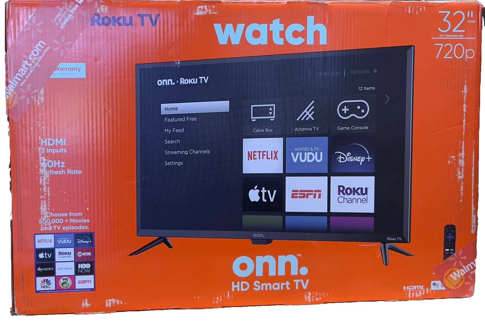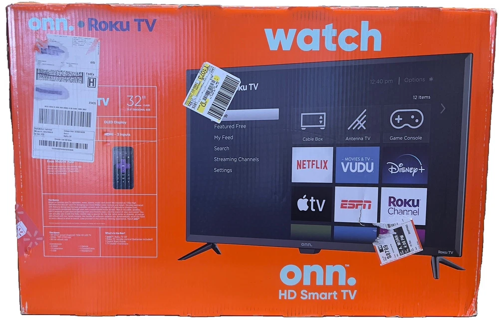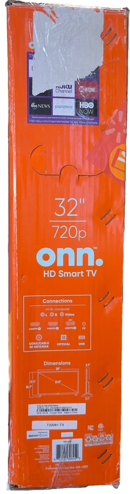 Used in excellent condition Experience high-quality streaming and entertainment with the ONN 32" LED Smart TV. This TV is perfect for those who enjoy Netflix and Android TV, with its Roku Streaming and Wi-Fi Ready features. The display technology of this TV ensures that you get the best viewing experience, with a maximum resolution of 720p and a refresh rate of 60 Hz. The ONN 32" LED Smart TV comes in an elegant black color, and it has audio/video inputs such as USB, Coaxial F, and HDMI. The model number of this TV is ONN 100012589, and it is a great addition to any home entertainment system. Get ready to enjoy seamless streaming and entertainment with the ONN 32" LED Smart TV.