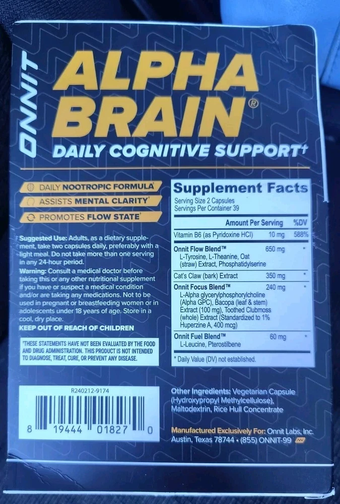 ONNIT ALPHA BRAIN MEMORY & FOCUS 78 CAPSULES Exp 2026.