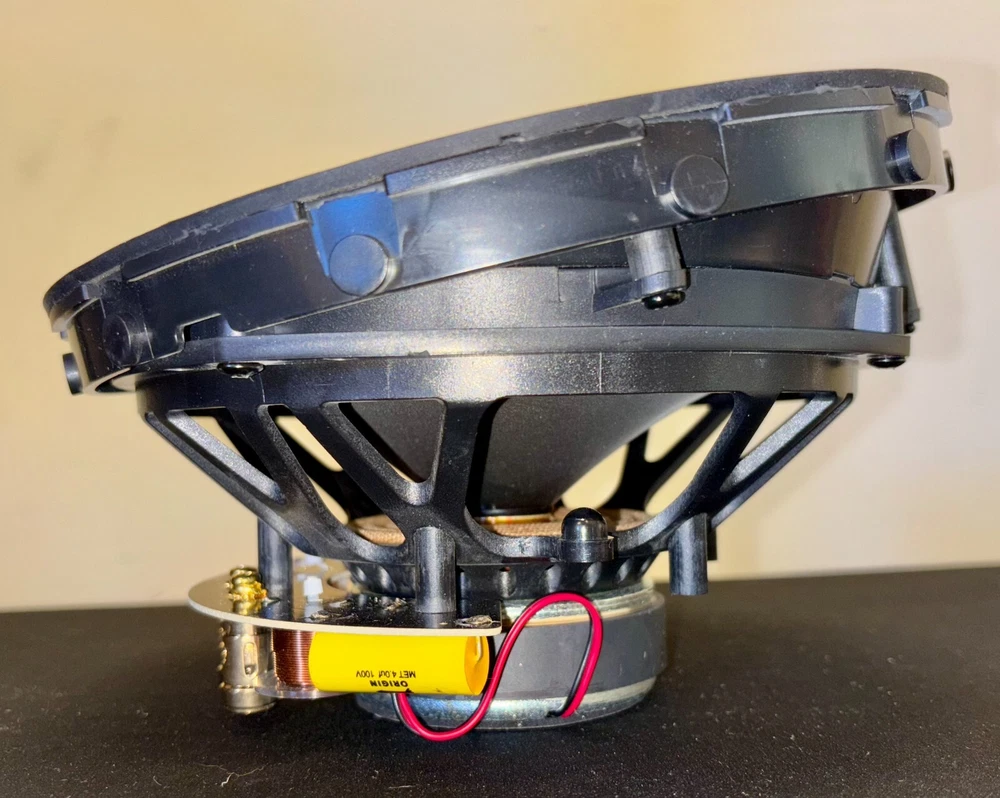 Director Collection 7.5-inch 2-way In-Ceiling Fixed Angle Speaker. Model Number- D83A Tweeter Dome- Aluminum Tweeter Diameter- 1" (25mm) Woofer Cone- IMG Woofer Diameter- 7.5" (203mm) Frequency Response- 38Hz-20kHz Recommended Amplifier Power- 50 watts - 125 watts Sensitivity- 91dB +/- 3dB Depth- 4.13" (105mm) Diameter- 9.61" (244mm) Cutout Diameter- 8.75" (222mm) Speaker Series- Director Speaker Shape- Round Nominal Impedance- 6 ohm minimum Mounting Depth- 4.13" (105mm)