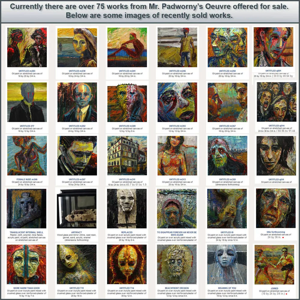 nn205 UNTITLED nn205 2024 Oil Paint on Gallery wrapped canvas Stretched canvas dimensions: 8 by 8 by 3/4 in. (20.5 cm by 20.5 by 1.9 cm.) [Please allow me a few days to package and ship these oil paintings -- thank you!] signed with initials on front and full signature on back Note: I am very happy to entertain all offers on paintings. Every offer received is always considered a compliment. - DP Note: I am very happy to entertain all offers on paintings. Every offer received is always considered a compliment. - DP S C R O L L D O W N T O V I E W M O R E D E T A I L I M A G E S To sign up for the weekly newsletter of new auctions and paintings in the eBay store Title and Provenance This painting is entitled UNTITLED nn205 , and includes the original signature of artist on front of painting and verso, with painting catalogue series and number applied on verso. Painting also includes a Certificate of Authenticity documenting chain of title and provenance for this work. Painting number nn205 may be included in forthcoming Catalogue Raisonné of the works of DAVID PADW0RNY. Medium and Dimensions Oil Paint on canvas of 8 by 8 by 3/4 in., including hanging clip. This painting is pre-stretched and sides of the canvas are painted (see images below). Each of the sides are painted differently, to read more about why each is painted in a unique manner please click here . The staples holding the canvas to the stretcher bars are on the back so the painting is ready for immediate display. Shipping notes: We are pleased to combine shipping. If you intend to buy/bid on additional works, please send email to let us know your preferences. If you would prefer overnight or expedited shipping we will be happy to accommodate your wishes - please email for a specific bid. If you wish to combine shipping -- please request that the future invoices be changed to reflect combined shipping. For more details on combined shipping please visit these links based on your location: United States , Canada , all other International . Payment: PayPal is preferred. Paintings will ship upon bank clearing your funds. Please make payment within 5 days of sale. If there are special circumstances that might prevent this -- please email prior to sale. Thank you. Guarantee: If for any reason the actual painting does not meet your full expectations, please return it upon receiving it in its original condition and packaging materials. We will refund the full cost of the painting, less shipping costs. Additional Images and Materials (All links below will open in a new window) About The Artist DAVID PADW0RNY was born in Norristown Pennsylvania. He is a graduate of the Maryland Institute College of Art and is currently working full time as a professional artist in Chelsea, NYC. Awards and Honors Scholastics Portfolio Award, New York, New York Ed Lindgren Memorial Scholarship, Sponsored by Artworks Orlando Orlando, Florida Fanny B. Thalheimer Scholarship, Maryland Institute College of Art Baltimore, Maryland First Place and Honorable Mention in Painting, Maitland Arts Festival Maitland, Florida Best of Show and First Place, "Enjoying Our Lakes" Photography Contest Windermere, Florida Three Gold Medals, Scholastics Competition, University of Central Florida Orlando, Florida Collector Comments Please feel free to email your opinions and comments of the paintings. We look forward to hearing more from you, our Valued Collectors, Gallerists and Curators. -- D.P. "Every time I paint a portrait I lose a friend." John Singer Sargent (1856 - 1925)