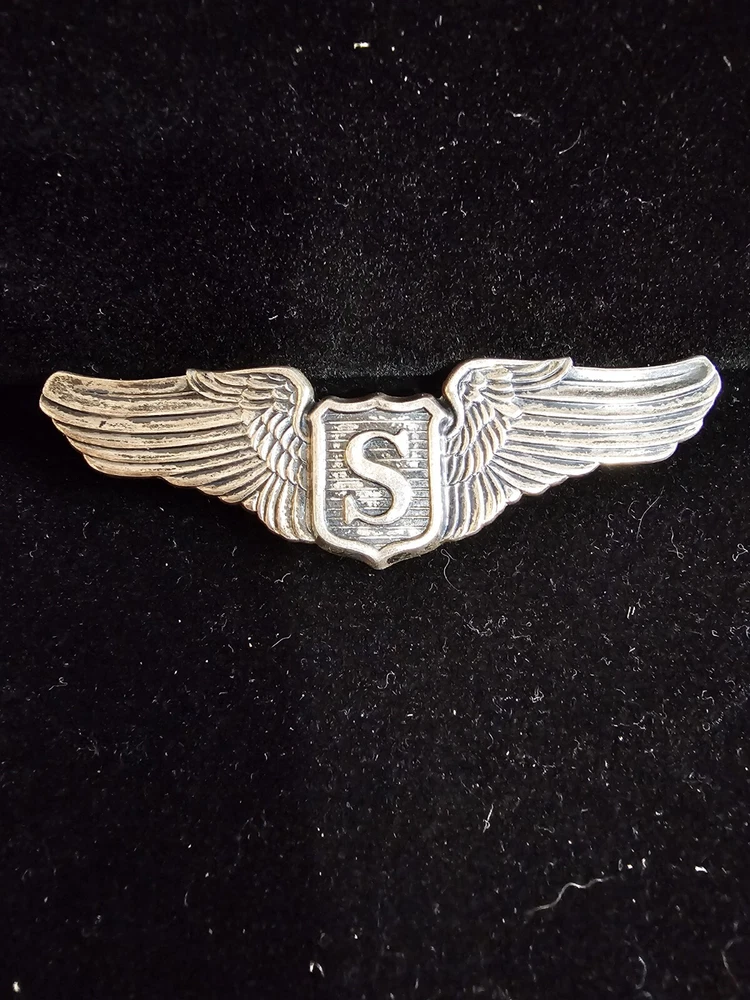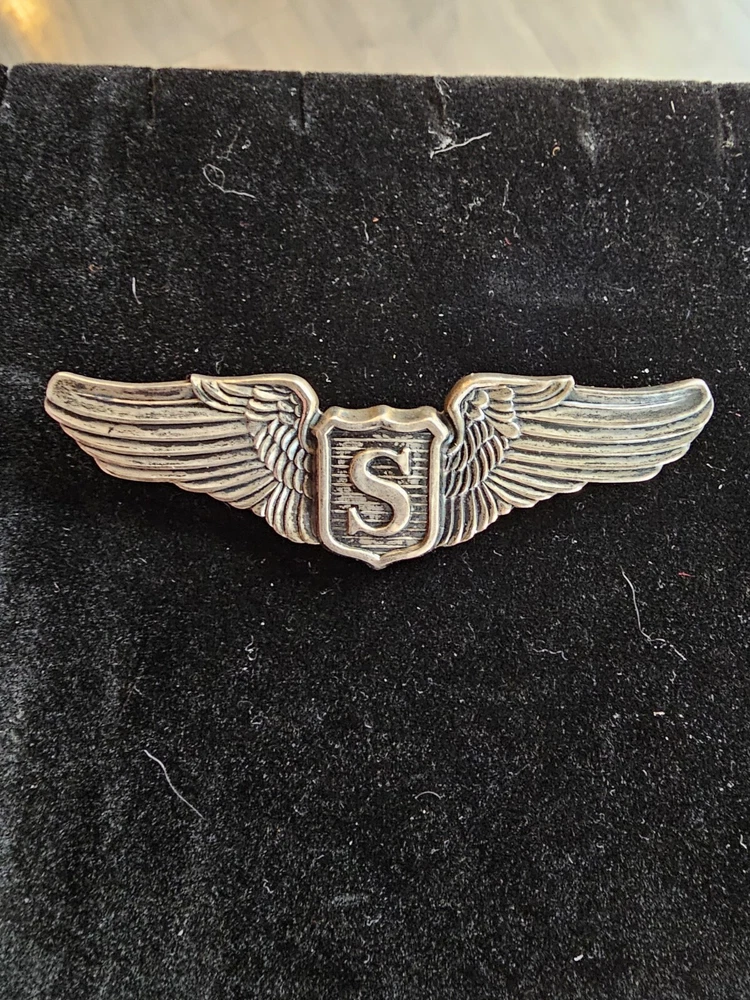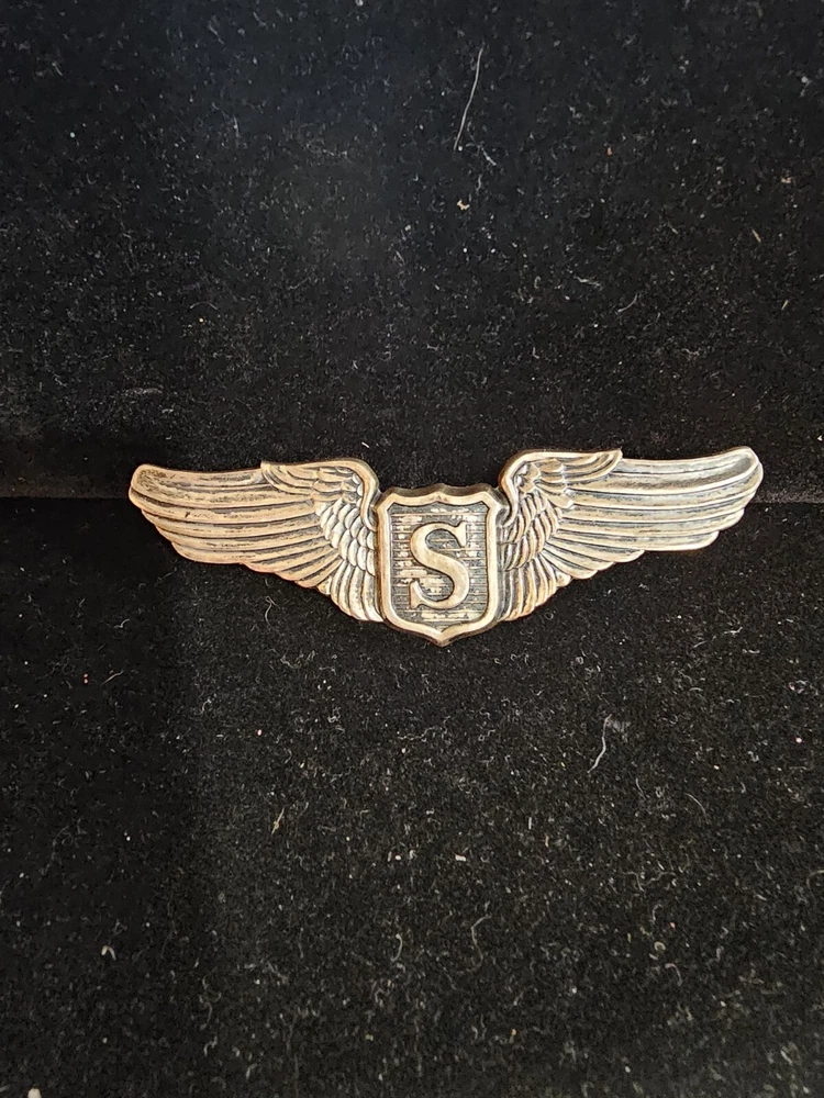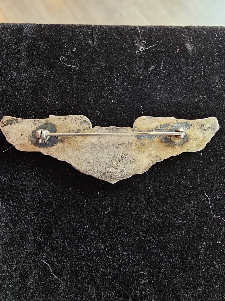 The product is an original WWII USAAF 3" sterling silver service pilot wings LGB pin. It is a collectible militaria item that was made in the United States during the WW II conflict (1939-45). The pin is a period original and has not been reproduced.