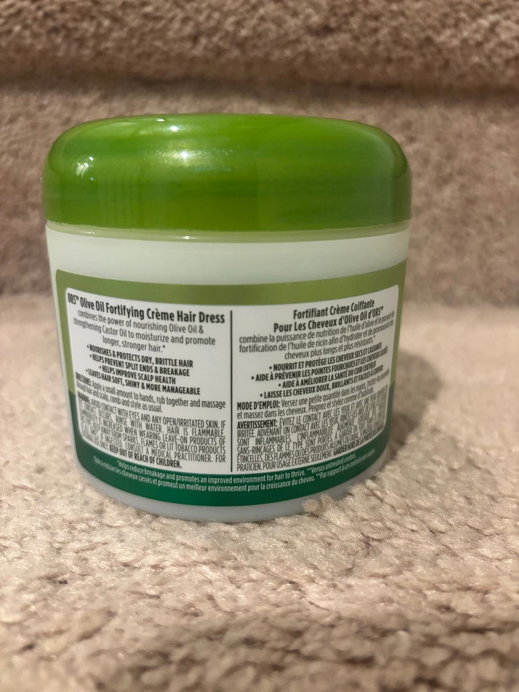 ORS Olive Oil Hair Dress Crème 8 oz. Product has never been used or opened. Olive Oil is one of those magical substances that is good for almost everything--your diet, your skin, your hands and nails, and your hair. ORS Olive Oil Creme contains olive oil, castor oil and herbal extracts that promote beautiful, lustrous, shiny, silky and dandruff free hair. Rich in essential fatty acids, it infuses moisture directly into the cuticle. Nourishes and Protects dry & brittle hair Helps prevent slit ends & breakages Helps improve scalp health & strengthen hair Moisturizes severely dry hair Leaves hair soft, shiny and manageable
