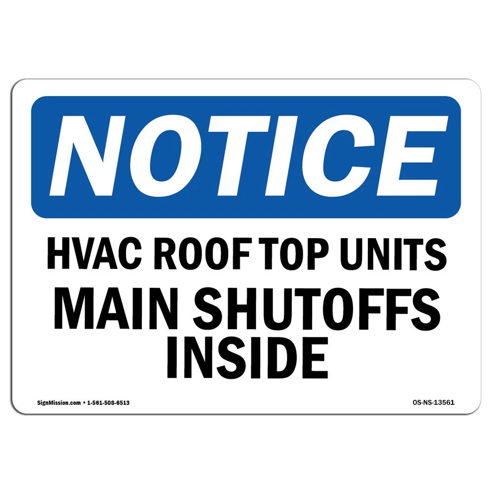 OSHA Notice Sign - HVAC Roof Top Units Main Shutoffs Inside | Rigid Plastic S...