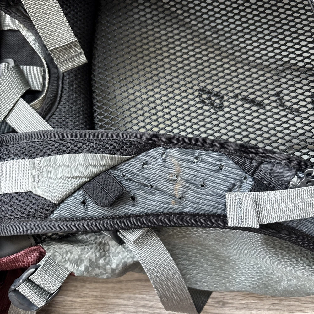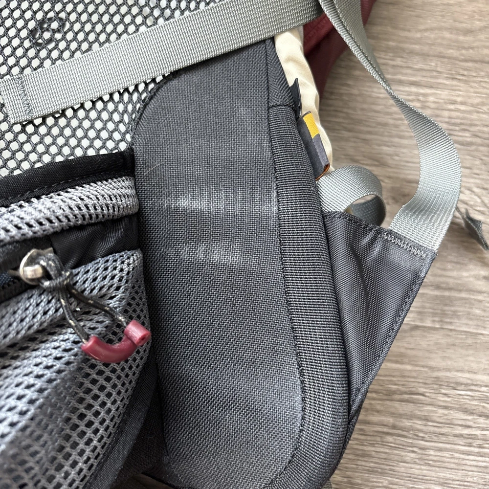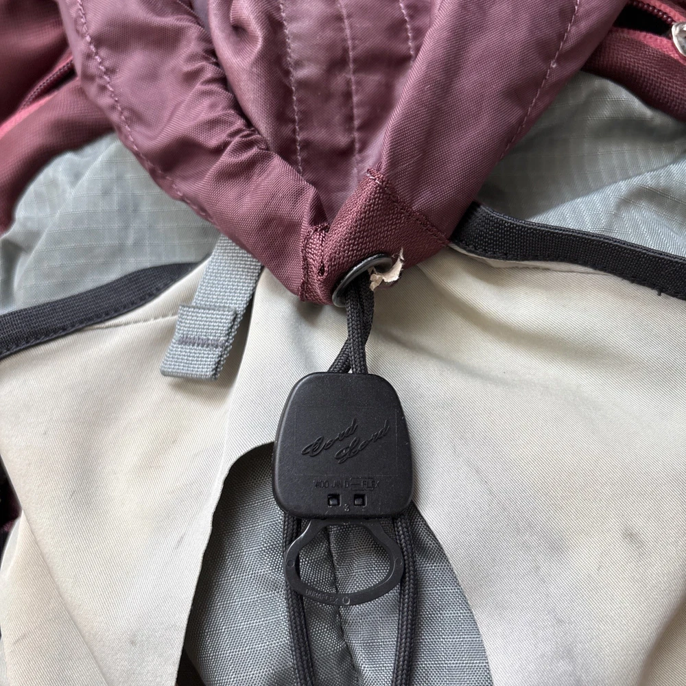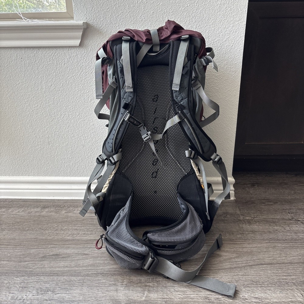 This OSPREY AURA 50 Hiking / Trail Backing - Women’s Large - Burgundy Red is pre-owned and does show signs of wear and tear but can still be used for your next adventure! Pictures show holes in waste strap pockets and other signs of wear and tear. Look at the pictures and please reach out if you have any questions.