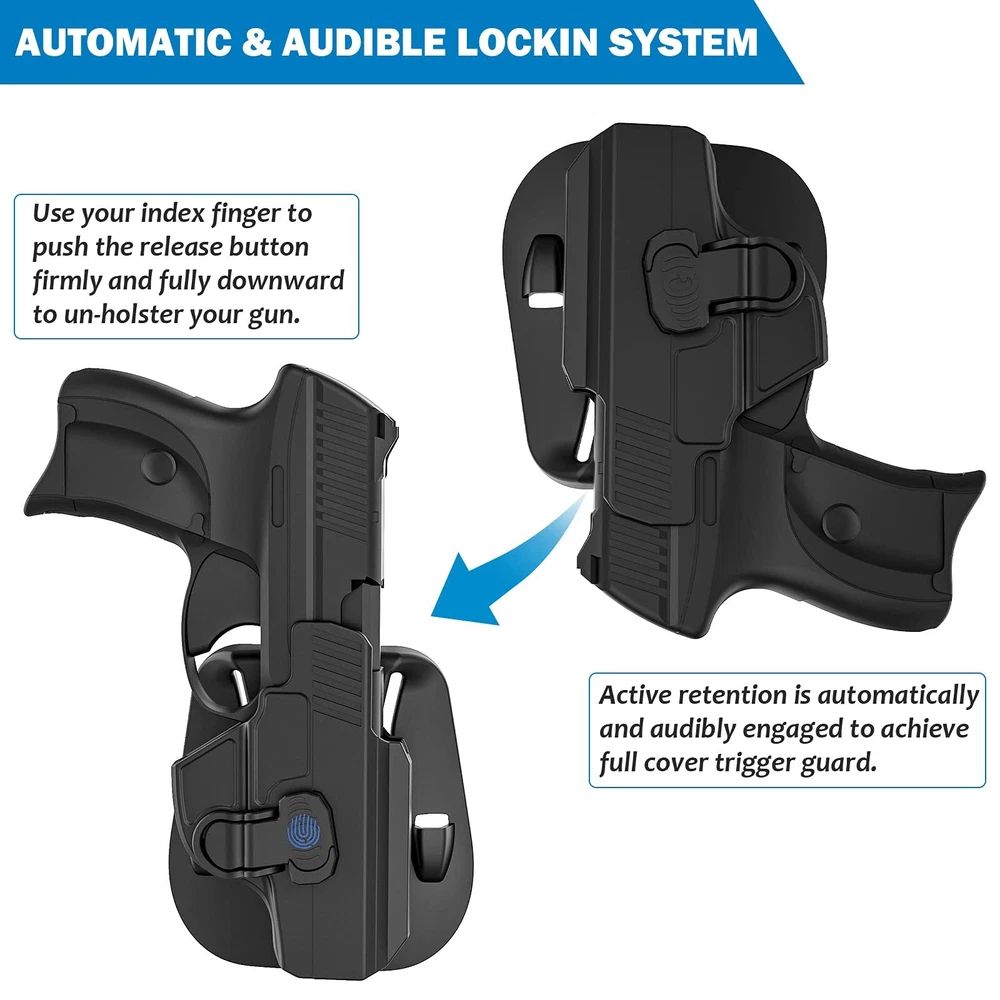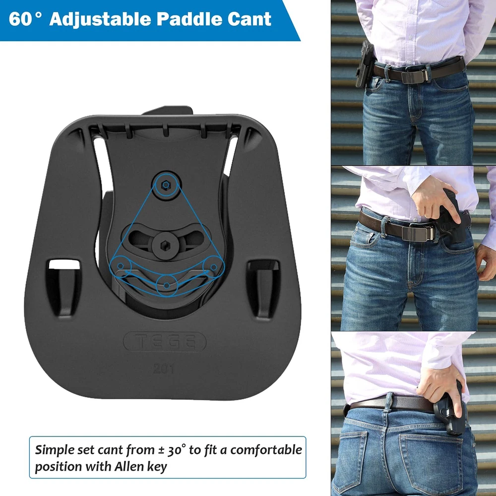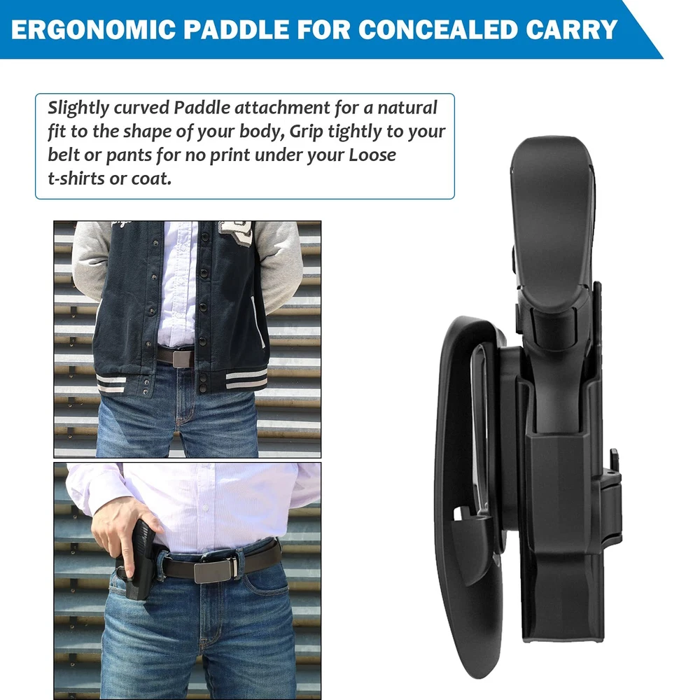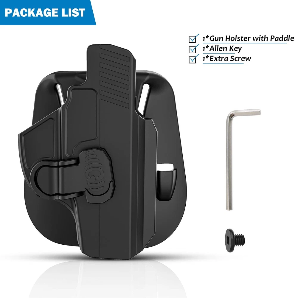 Weapon Compatibility - Compatible with Ruger LC9 LC9s lC380 EC9(Not fit laser or sight version). This holster can fit for Ruger LCP, Ruger Security9, SCCY CPX-1/CPX-2. Type - Paddle holster fits closer to body than many other paddle holsters on the market, which can achieve better under clothes. Secure Retention - Auto locking system restrain pistol in OWB holster to ensure ultimate safety, activate the release by pressing button with index finger to achieve gun access Adjustable Angle - Easily set paddle 0-60 degrees to your desire position with Allen key, compatible belt width up to 2 inch Tough, Durable Material - Custom-molded body made of polymer stronger than leather that will wear out, adapt to every bad environment