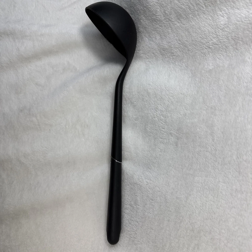 This OXO Good Grips soup ladle is the perfect addition to your kitchen. With a durable black nylon handle and a solid pattern, this ladle is perfect for serving soups and stews. The soft and comfortable grip ensures that you can hold the ladle securely and pour your liquid without any spills. The ladle is dishwasher safe, making it easy to clean and maintain. It is manufactured in China with high-quality plastic material and features a nylon handle. The set includes one soup ladle with no custom bundle. Get this OXO soup ladle today and enjoy cooking your favorite soups and stews with ease.