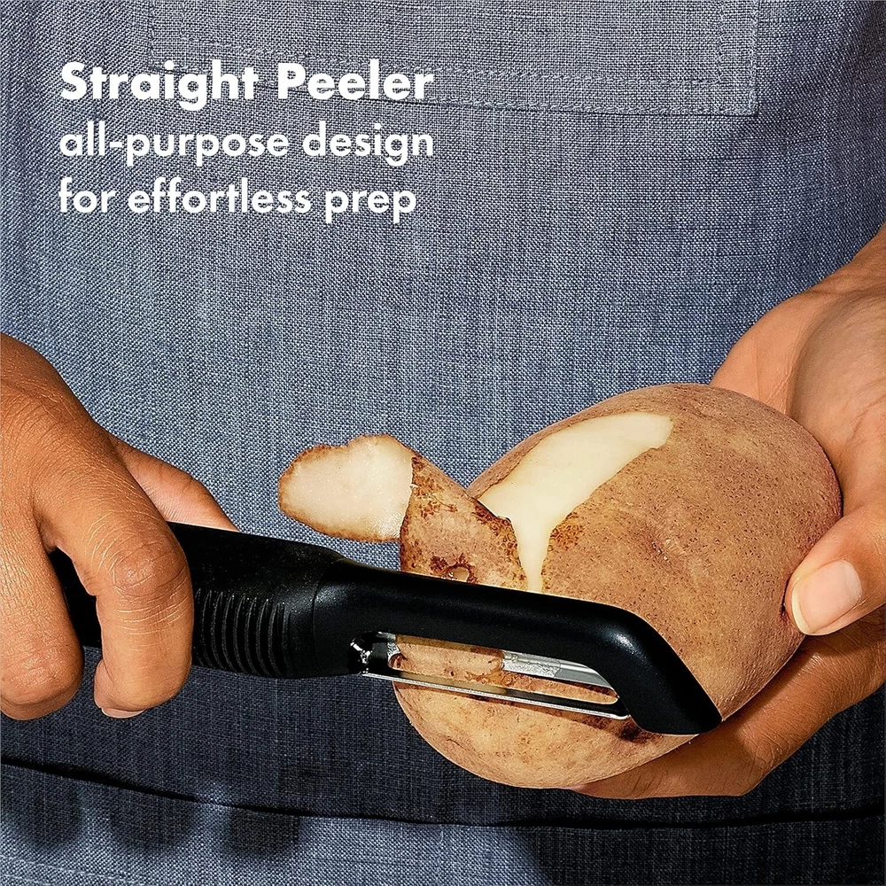 Sharp, durable, Japanese stainless steel blades won’t rust Straight Peeler all-purpose design for effortless prep Julienne Peeler creates precise strips of carrots, zucchini and more Non-slip ergonomic handles Dishwasher safe