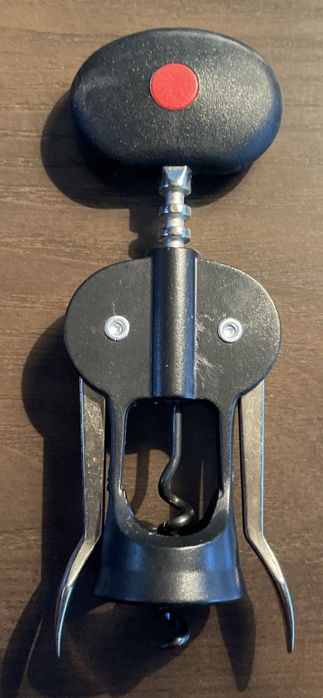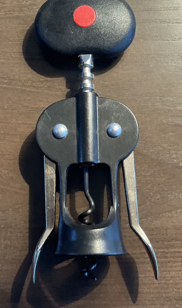 The OXO Softworks Corkscrew is a sleek and modern addition to any kitchen or barware collection. Its black finish and ergonomic design provide both aesthetics and functionality, making it a go-to tool for wine enthusiasts and home bartenders alike. The winged corkscrew style ensures a firm grip and easy maneuverability, allowing for effortless removal of wine bottle corks. Crafted for durability and ease of use, this OXO wine bottle opener is a must-have for those who appreciate a combination of style and practicality. Its sturdy construction guarantees longevity, while the simplicity of its design ensures it's always ready for action whenever you are. This item is in good condition. It does show a little wearing on the black top with the red dot. Please refer to the pictures for the best details of the exact item you are receiving. Photos are NOT stock photos!