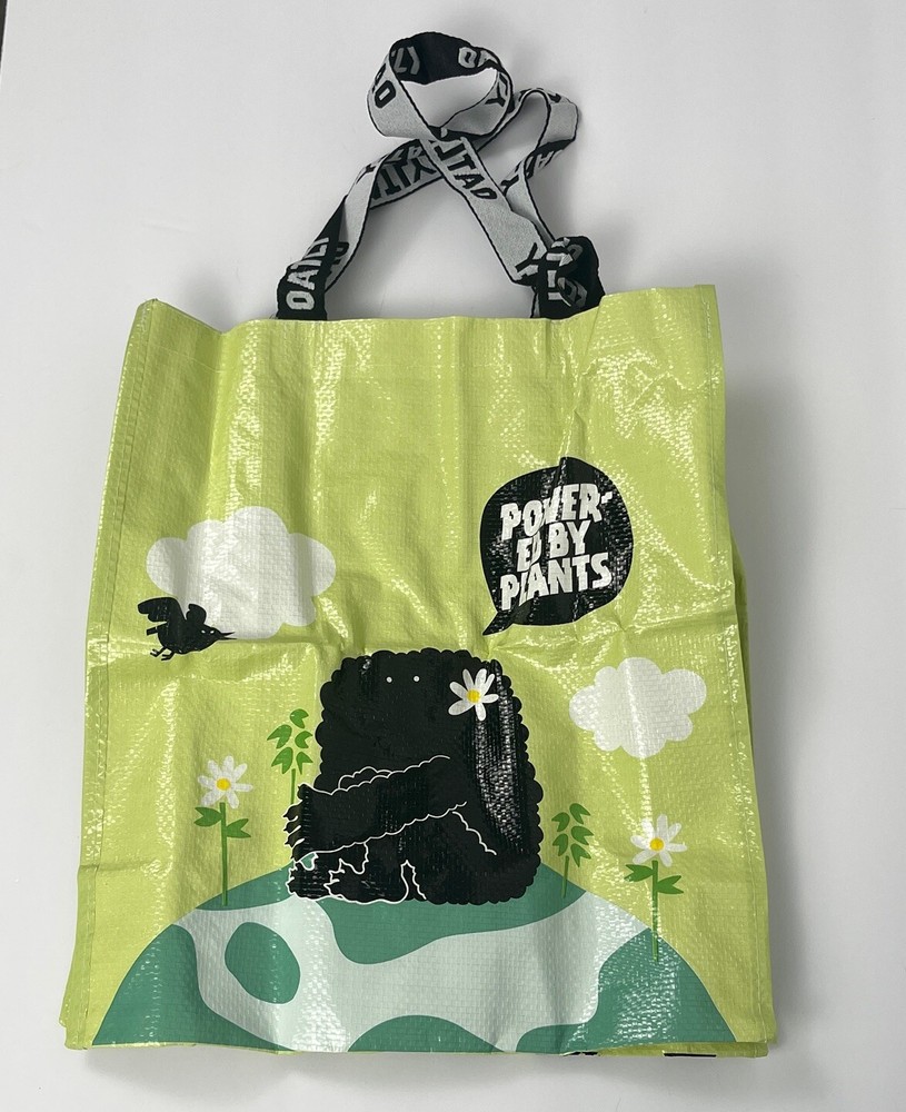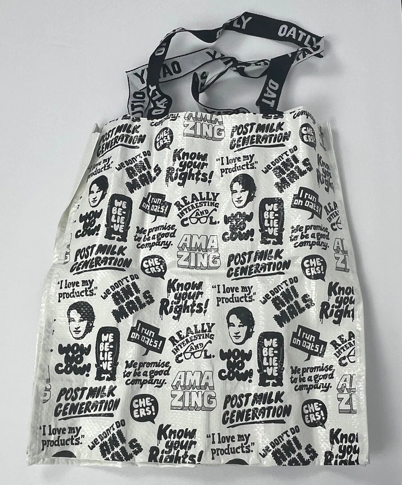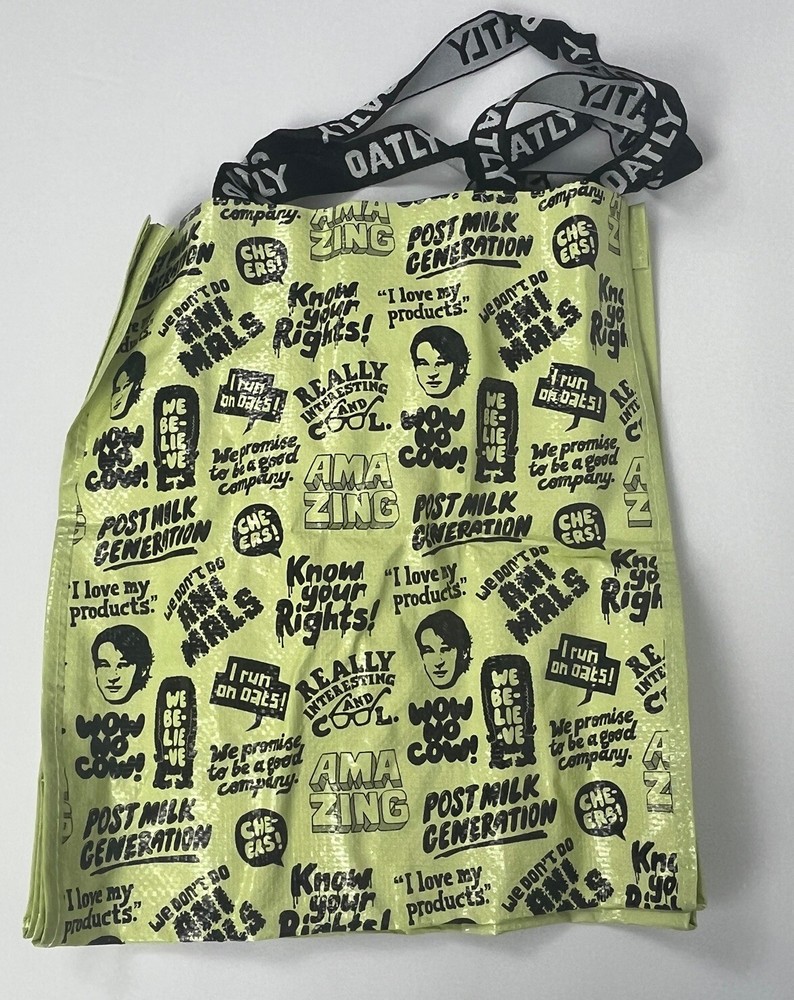 Lot 2 Shopping Tote Reusable Market Shopper Bags Oatly Oat Drink Green and White Totes Dual Straps 14x12x5.5 inches. Packaging opened to take photos.