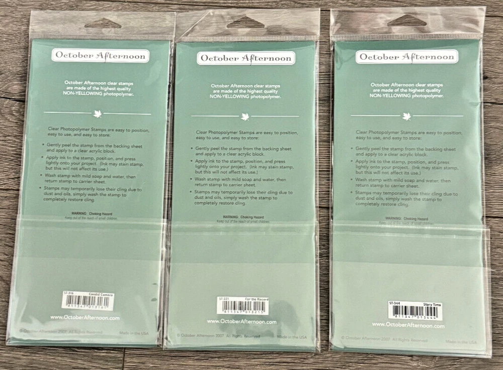October Afternoon new clear stamps. 1) Story Time 2) For the Record 3) Candid Camera