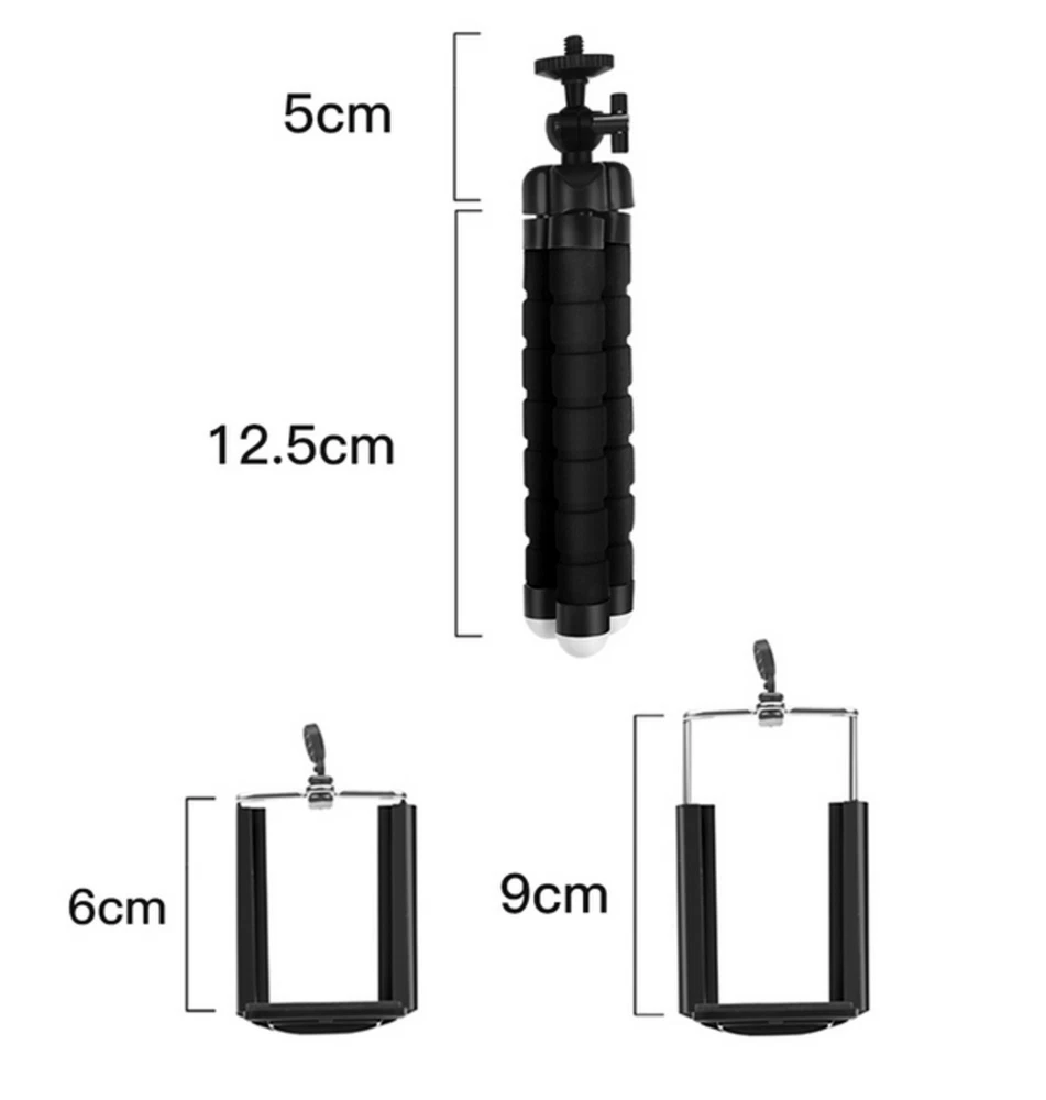 Octopus Adjustable Tripod Stand Flexible Phone Holder for iPhone Camera Bracket 2 BUY, 1 FREE OF CHARGE (3 order) 4 BUY, 2 FREE OF CHARGE (6 order) 6 BUY, 3 FREE OF CHARGE (9 order) 【High Quality】 Mini tripod for smartphone the flexible tripod legs are made of thick premium metal and full metal connector, reinforced with a rubber coating and stable foam. The design with non-slip rubber feet makes the adjustable tripod very stable on desks and floors 【Lightweight and Compact Tripod】 Cell phone tripod's particularly flexible legs allow you to instantly bend them to any angle for effortless setup, and you can even wrap the legs around objects such as railings for added variety in shooting compositions and frames. In addition, this flexible tripod can be aimed with ease for storage or storage in the backpack for travel, hiking or camping or even work as a selfie stick. 【Multi-angle shooting】 The clip and tripod tilt can be rotated 360° degrees, hold your phone in both high, vertical and high angle mode without having to remove the phone. In addition, the 360° rotatable ball joint allows you to control the angle of the phone/camera with gentle movement. · The tripod is very versatile, you can use it normally as a tripod, but also attach it to poles, fences or branches and much more, or you can bend it as a tablet holder. · The head is rotatable and tiltable, the legs are foam-coated and the feet are non-slip. · The included universal mount can be used to mount smartphones with a width between 60 mm and 90 mm. · A camera can also be mounted directly on the 1/4 inch thread. Scope of delivery: 1 x Tripod (Color: depending on your choice) 1 x Universal bracket