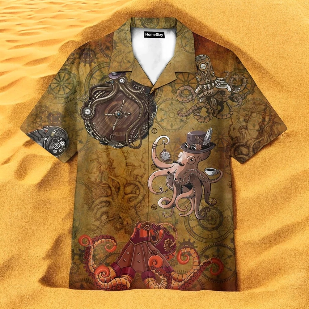 Octopus Steampunk Hawaiian Shirt Short Sleeve Summer Beach Size S - 5XL