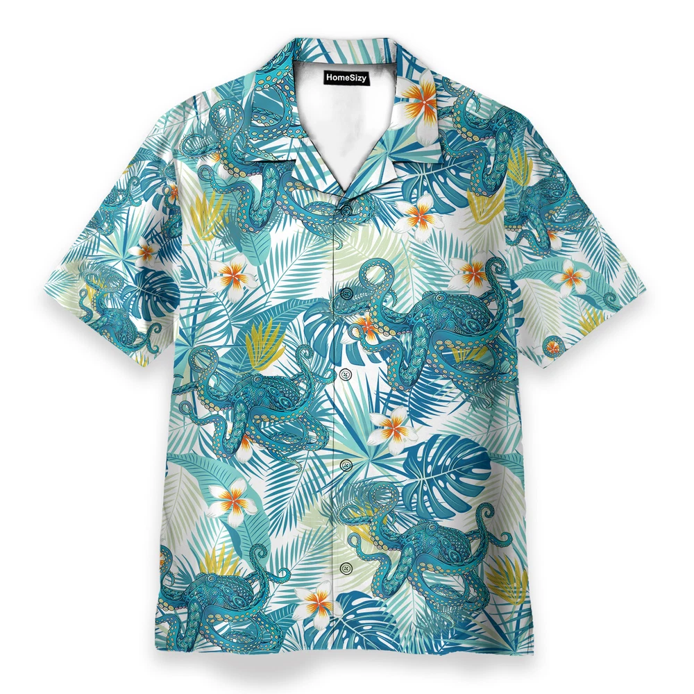 Octopus Tropical Leaves Pattern Hawaiian Shirt Beach Shorts