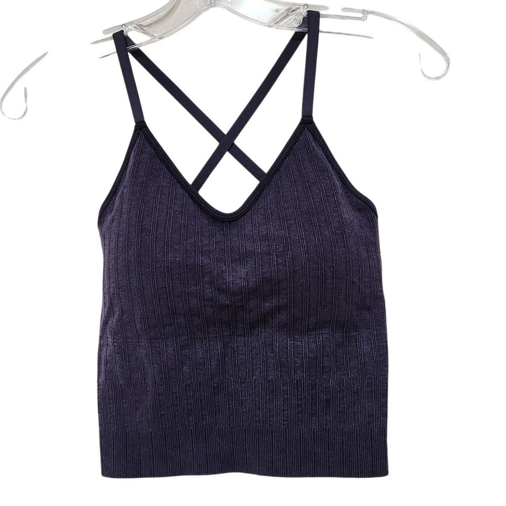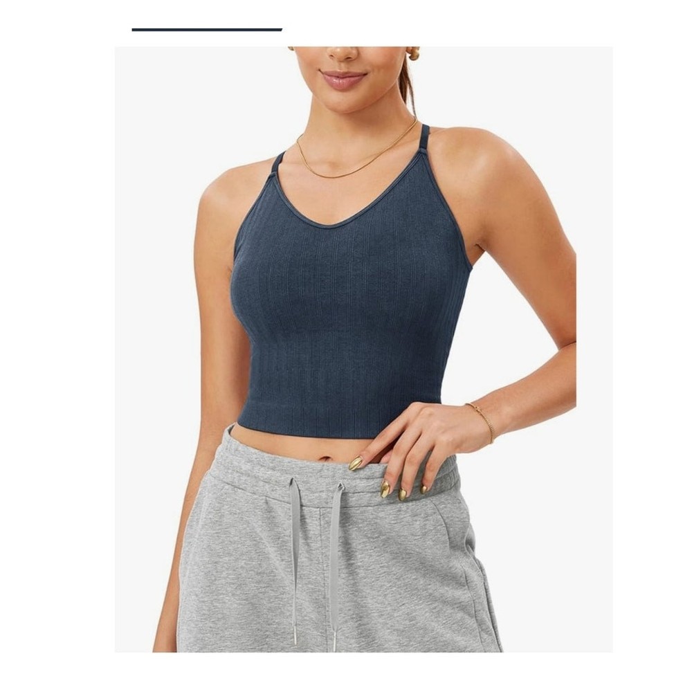 Ododos Seamless Padded Sports Bra Criss-Cross Open Back Brami Top Blue Sz XS/S Brand new with tags. Features: Designed for low impact workout or everyday wear. Super comfy bra meets camisole in this seamless ribbed brami. Wear this top as a bra, or as a stand alone crop top. V-Neckline Strappy Back Seamless Ribbed Adjustable Strap Removeable Pads Easy Match Seamless Fabric 88% Nylon 12% Spandex Soft Touch 4-way Stretch Moisture Wicking