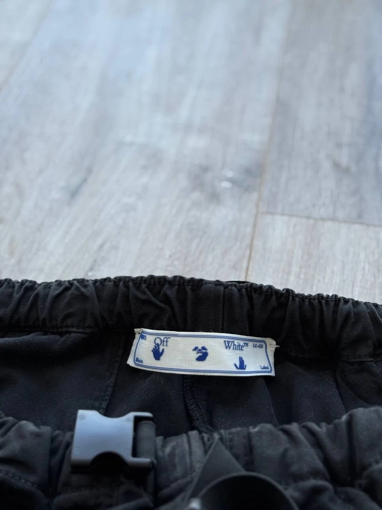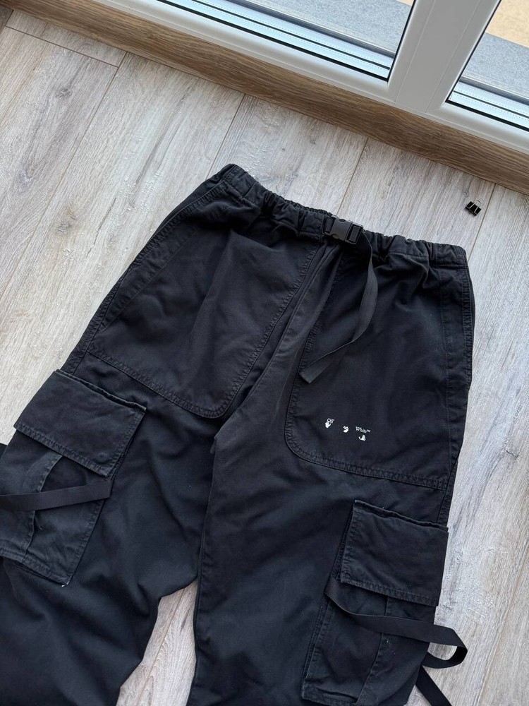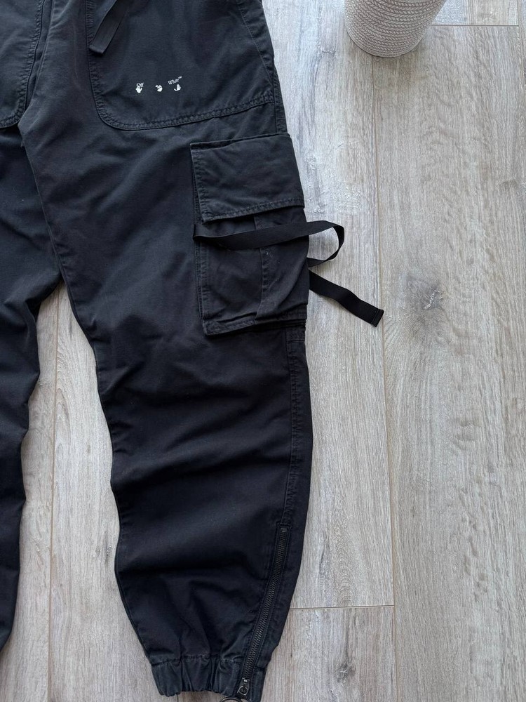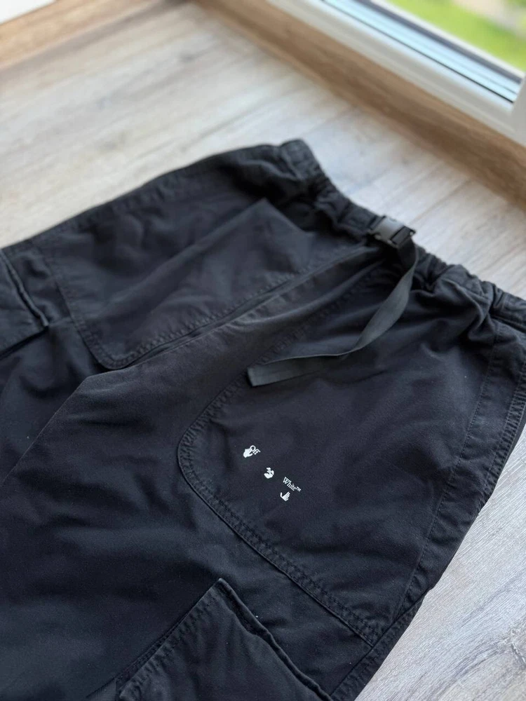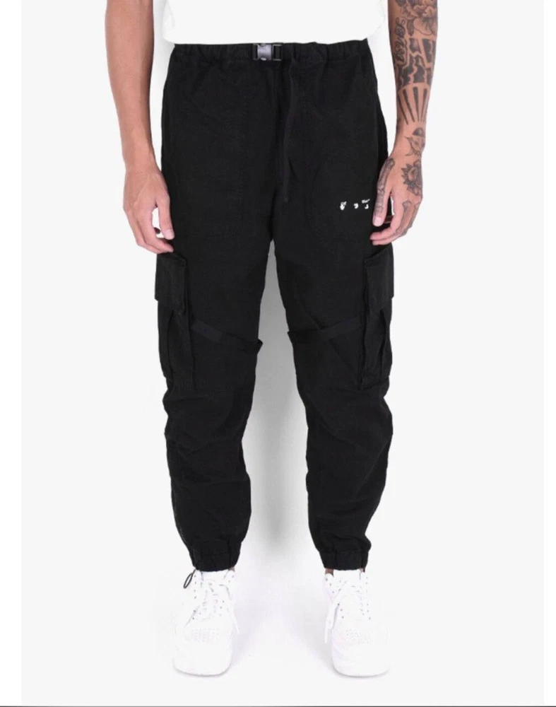 The Off-White Virgil Abloh 'Parachute Logo' Cargo Pants in Black, size 32/Medium, are versatile pants suitable for various occasions such as travel, wedding, party, casual, formal, workwear, and business. Made from cotton canvas material, these regular fit pants feature a logo accent and multiple pockets for convenience. With a vintage style and a theme that includes elements like cars, nature, festival, art, and more, these pants are a stylish addition to any man's wardrobe. Perfect for all seasons, these pants are machine washable and crafted by the renowned brand Off-White, adding a touch of sophistication to any outfit.