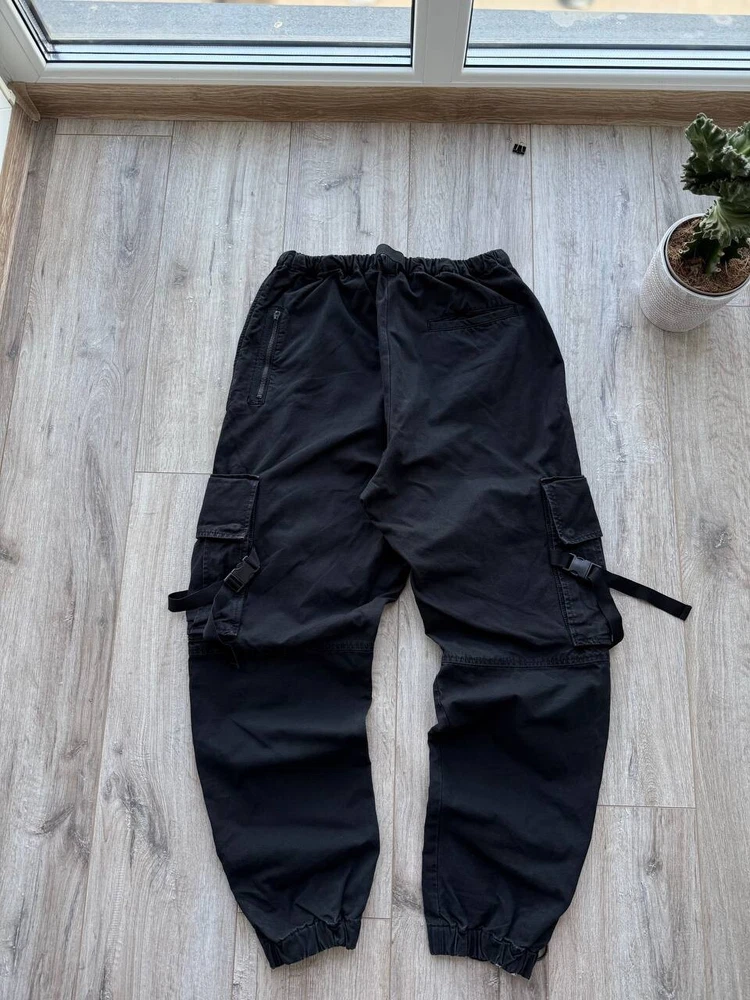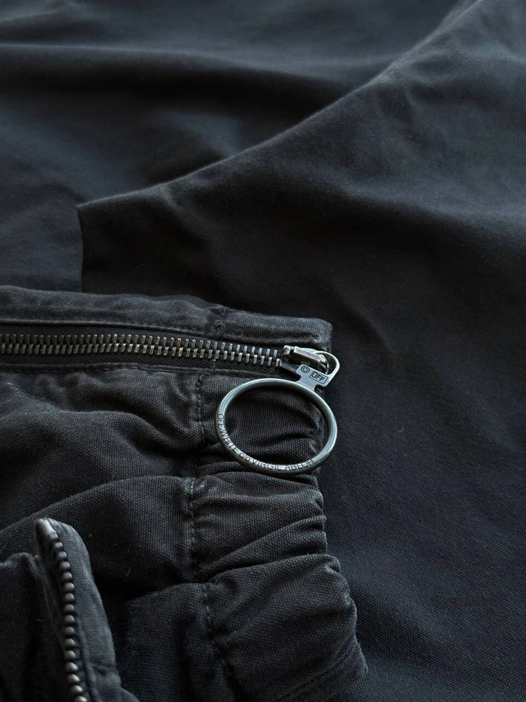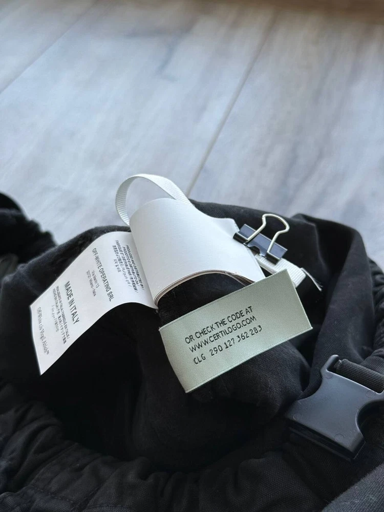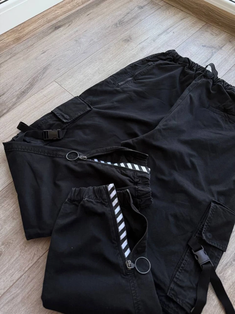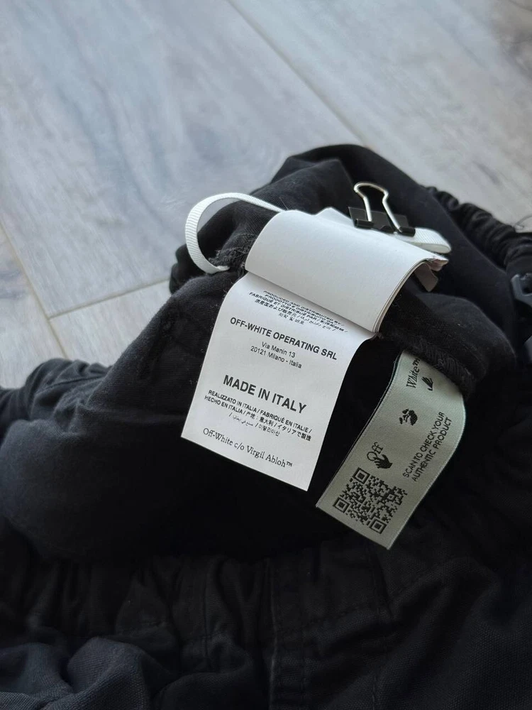 The Off-White Virgil Abloh 'Parachute Logo' Cargo Pants in Black, size 32/Medium, are versatile pants suitable for various occasions such as travel, wedding, party, casual, formal, workwear, and business. Made from cotton canvas material, these regular fit pants feature a logo accent and multiple pockets for convenience. With a vintage style and a theme that includes elements like cars, nature, festival, art, and more, these pants are a stylish addition to any man's wardrobe. Perfect for all seasons, these pants are machine washable and crafted by the renowned brand Off-White, adding a touch of sophistication to any outfit.