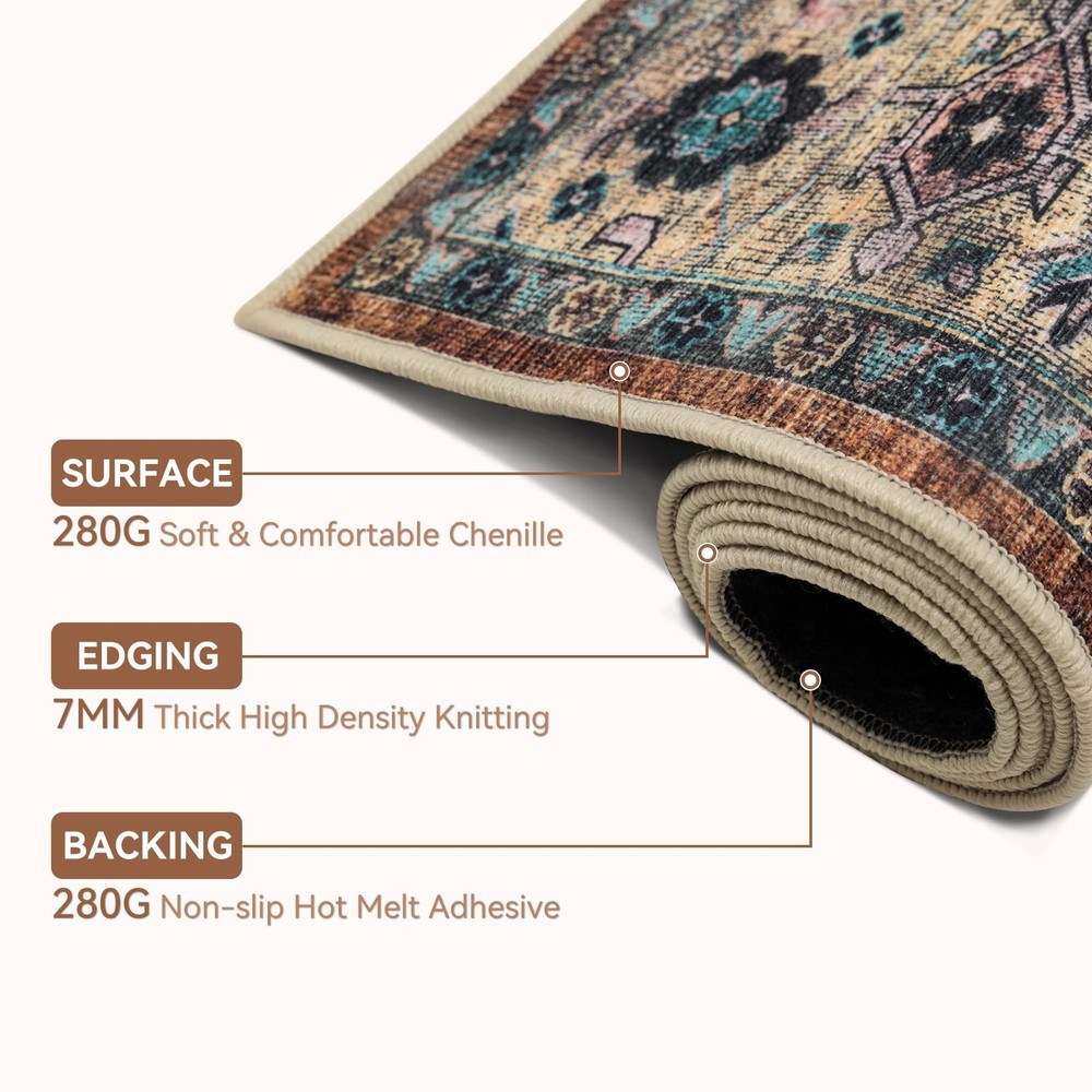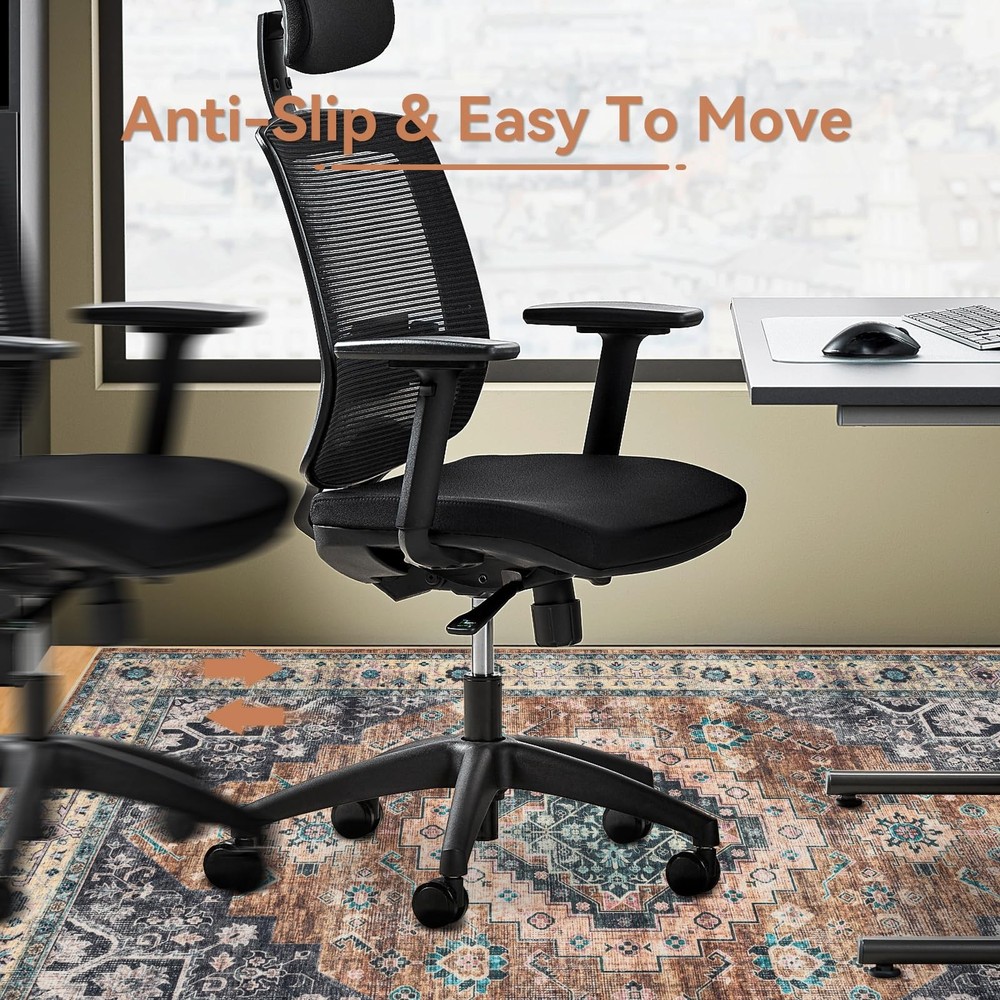 48"x60" Chair Mat for Hardwood Floor/Tile Floor, 60 x 48 Office Desk Chair Mat for Hard Floors, Anti Slip Under Desk Rug Protector for Rolling Chair, Computer Gaming Chair Mats, Brick Red EASY MOBILITY: The 4 mm thick chair mat ensures effortless chair movement without any resistance. Experience smooth transitions whether standing up or sitting down. The 7 mm edge-locking design prevents curling at the edges to reduce tripping hazards SUPERIOR GRIP: The 280 grams anti-slip coating provides exceptional traction on various surfaces. The office chair mat will not slide or bunch up, even when pets run around. The desk chair mat won't leave any sticky traces on your flooring FLOOR PROTECTION: This chair mat for hardwood floors, tiles, and felt floors. The desk mat for chairs effectively prevents scratches and wear from chair movement. And helps maintain the pristine condition of your floors for years of use WARM, BOHO DESIGN: Made from Top-notch printed fabric, the office rug for rolling chairs features warm tones and elegant patterns. desk rug adds a touch of soft artistry. The 280 grams chenille offers a soft touch when you walk barefoot on it CLEANING & STORAGE: The under desk rug is machine washable, and can also be cleaned with a vacuum or robot cleaner. It conveniently folds for storage in your cabinet. It is practical for busy lifestyles ensuring minimal cleaning effort