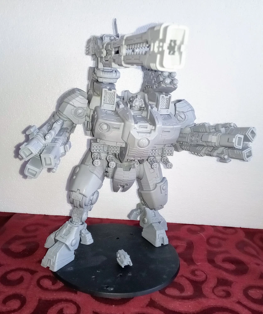Official Forge World KX139 Ta'unar Supremacy Armour Armor - Built This listing includes: - Assembled KX139 Ta'unar Supremacy Armour Body - Assembled Heavy Rail Cannon Array and Missile Pod. These weapons can be mounted on the back and have not been attached or magnetized. It's up to the buyer to decide how this will be done. - Assembled Tri-Axis Ion Cannons ( Both Arms) - Two heads to choose from, not yet glued down. One had previously been used for a kitbash and shows signs of that on the bottom, but is still usable. Details: - This Forge World model is resin, and the body, weapons, and arms were originally sold separately. Availability from Games Workshop is rare. - The arms and chest-mounted weapons are magnetized - The legs and hip joints are pinned and glued as this is a heavy model. one of the rods can be seen on the back of the knee, but lines up well enough with the details that it can be hidden with paint. - One foot is propped up by a clear piece of plastic while the other one is held up by a portion of the rod used to pin the leg. The buyer can remove these if they wish, but i do not trust the design of the feet to hold up the model long-therm. These can also be hidden by adding details to the base. - The exposed bit of ball joint on the left leg will require some cleanup. -Some imperfections in the resin have already been cleaned up with green stuff, but a spot or two might have been missed. Buyer should do a final clean-up pass before priming and painting. -Base has some holes that will need to be covered up, which should happen naturally as the buyer finishes the model. - Includes original instructions - Look closely at the pictures and zoom in so you know what you're getting. This model is sold AS-IS, and will be packed extremely well. From a Smoke-Free Home. US Shipping only! Questions?...just ask.