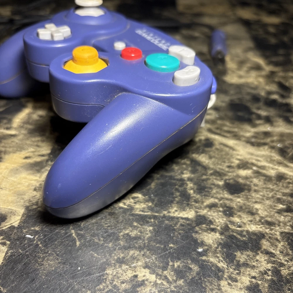 Elevate your gaming experience with the Authentic OEM Official Nintendo Gamecube Controller in a vibrant purple hue. Designed for precision and comfort, this controller is compatible with both the Nintendo GameCube and Wii systems, ensuring seamless integration with your existing setup. Its rigid plastic construction is built to last through even the most intense gaming sessions. Featuring a convenient 5ft. cable for ample maneuverability, the controller attachment ensures a secure and firm grip during play. The model DOL-003 is ready to deliver the classic feel and responsive controls that gamers have come to expect from the Nintendo brand. Whether you're playing solo or gearing up for a classic multiplayer experience, this controller is poised to enhance your gaming moments.