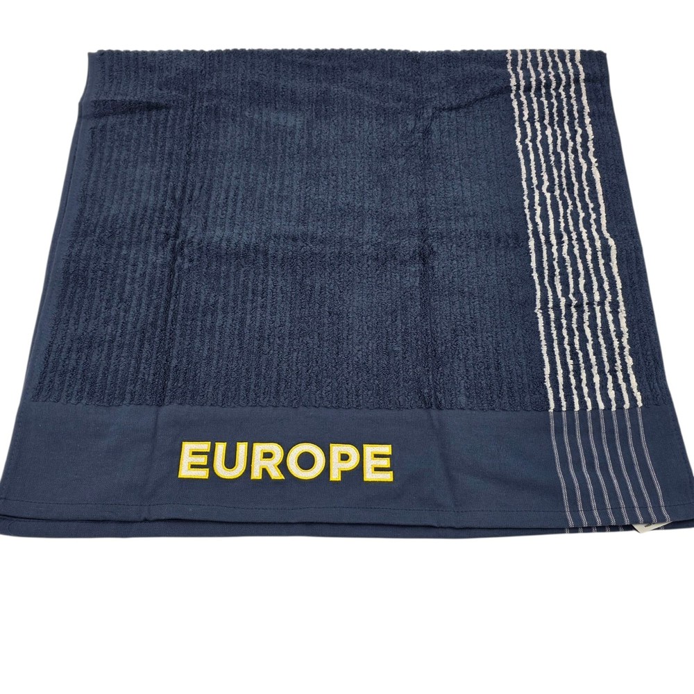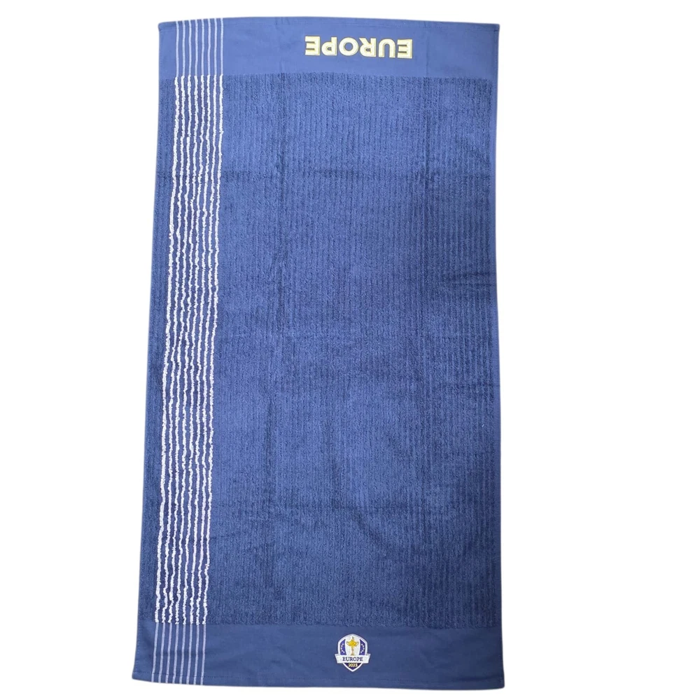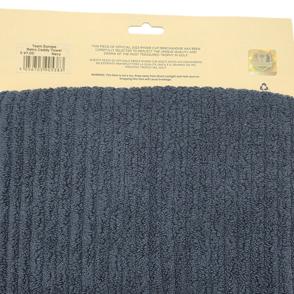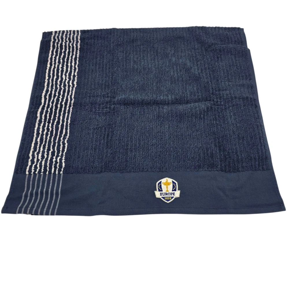 Official Ryder Cup23 Europe Retro Stripe Caddy Towel NAVY The Official Ryder Cup23 Team Europe Retro Stripe Caddy Towel in NAVY is a must-have item for any golf enthusiast. Featuring the iconic Team Europe retro stripe design, this towel is perfect for showcasing your support for the European team during the Ryder Cup. Made for the 2000s period, this towel is ideal for fans of golf memorabilia and sports memorabilia, making it a unique and stylish addition to any golf bag or collection. Whether you're a fan of Team Europe or just love golf, this caddy towel is a stylish and practical choice for any golfer. Dimensions : 44" x 22" (111.76cm x 55.88cm)