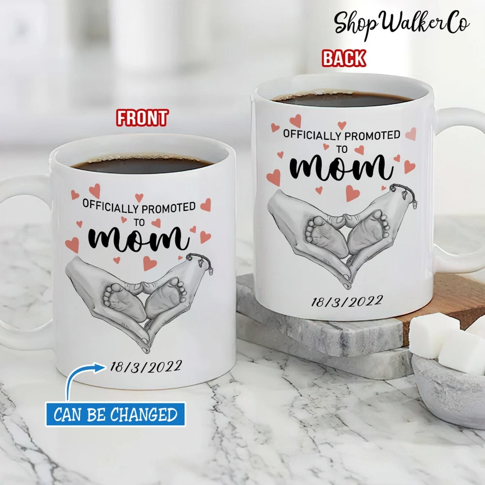 Officially Promoted To Mom Mommy Mug First Mother's Day Mug New Mom Gift Product Details.. This high quality 11oz. ceramic white mug has a premium hard coat that provides crisp and vibrant color reproduction sure to last for years. Perfect for all hot & cold beverages. The highest quality printing possible is used. It will never fade no matter how many times you wash it. Material: 100% Ceramic. Print both sides. Dishwasher and Microwave Safe. High Gloss + Premium White Finish. Printed in the U.S.A. Personalized & Custom. We support personalized and custom mug to add custom, when placing an order, you can add notes to the "order note" in shipping address section. Also you can contact us directly via message. Shipping Info. Ready to ship in 1 to 2 business days, All products are made-to-order and proudly printed in the United States. Shipped by USPS and DHL, You will receive your order in 5-7 days. Replace & Refund. All products are defective during shipping broken, chipped will be replaced free of charge. You are not satisfied with the product, we will refund 100% money to you. If any other issues arise, please do not hesitate to message, we would be more than happy to assist you.