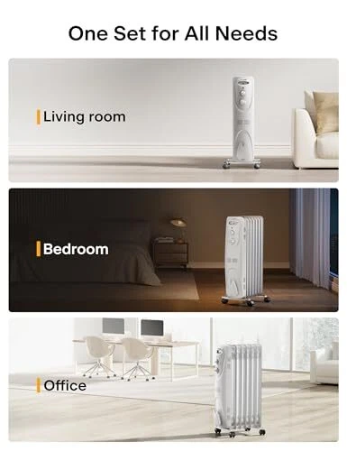 Oil Filled Radiator Heater for indoor use Large Room Safe with Thermostat, 15...