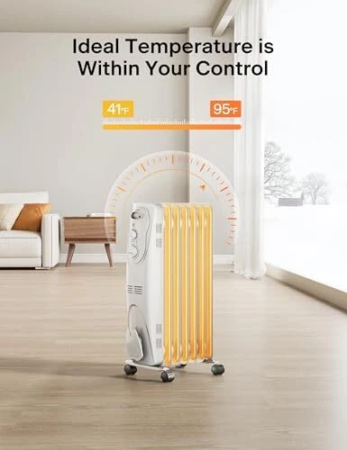 Why choose Oil-filled Heater? Oil-filled radiator provide the most efficient and cost effective electrical heating solution for longer term use. They are ideal for medium to large rooms needing constant temperature. Safety Technology of Oil-filled Heater Over-heating protection - Being applicable to the elderly people and children It possesses the double automatic temperature limiter, which can automatically power off in case of excessive temperature, so both the elderly people and children can use it directly. Safety tip-over switch built in – Safety providing warmth to you every moment If the machine is fallen, it can automatically power off, to prevent the occurrence of dangers. Flame-resistant material – Comprehensively prevent the fire Flame-resistant material is provided for all plastic parts, which can prevent the high temperature from starting a fire, so it is safer without open flame. 𝑭𝒂𝒔𝒕 π‘―π’†π’‚π’•π’Šπ’π’ˆ, π‘³π’‚π’”π’•π’Šπ’π’ˆ π‘ͺπ’π’Žπ’‡π’π’“π’•: The 1500W power heats the whole house rapidly and the hot air circulation delivers long-lasting and gentle warmth which avoids dryness in winter, making oil heater your best choice π‘¬π’π’†π’“π’ˆπ’š π‘¬π’‡π’‡π’Šπ’„π’Šπ’†π’π’•: Equipped with 3 heating modes 600W/900W/1500W, which can also be used in combination to help save energy bills in winter π‘Ύπ’‰π’Šπ’”π’‘π’†π’“-π‘Έπ’–π’Šπ’†π’•: Lacking of fan construction, oil heater is super quiet, perfect for bedrooms, offices, rooms and other indoor places where not fan of noise π‘ͺπ’π’Žπ’‘π’“π’†π’‰π’†π’π’”π’Šπ’—π’† π‘Ίπ’‚π’‡π’†π’•π’š: Power indicator light lets you know the unit is ON, built-in safety, over-heat protection and tip-over safety switch shuts heater off if accidentally knocked over 𝑷𝒐𝒓𝒕𝒂𝒃𝒍𝒆 π‘«π’†π’”π’Šπ’ˆπ’: 4 heavy-duty universal casters and the front carrying handle make it easy to satisfy your needs of heating different rooms