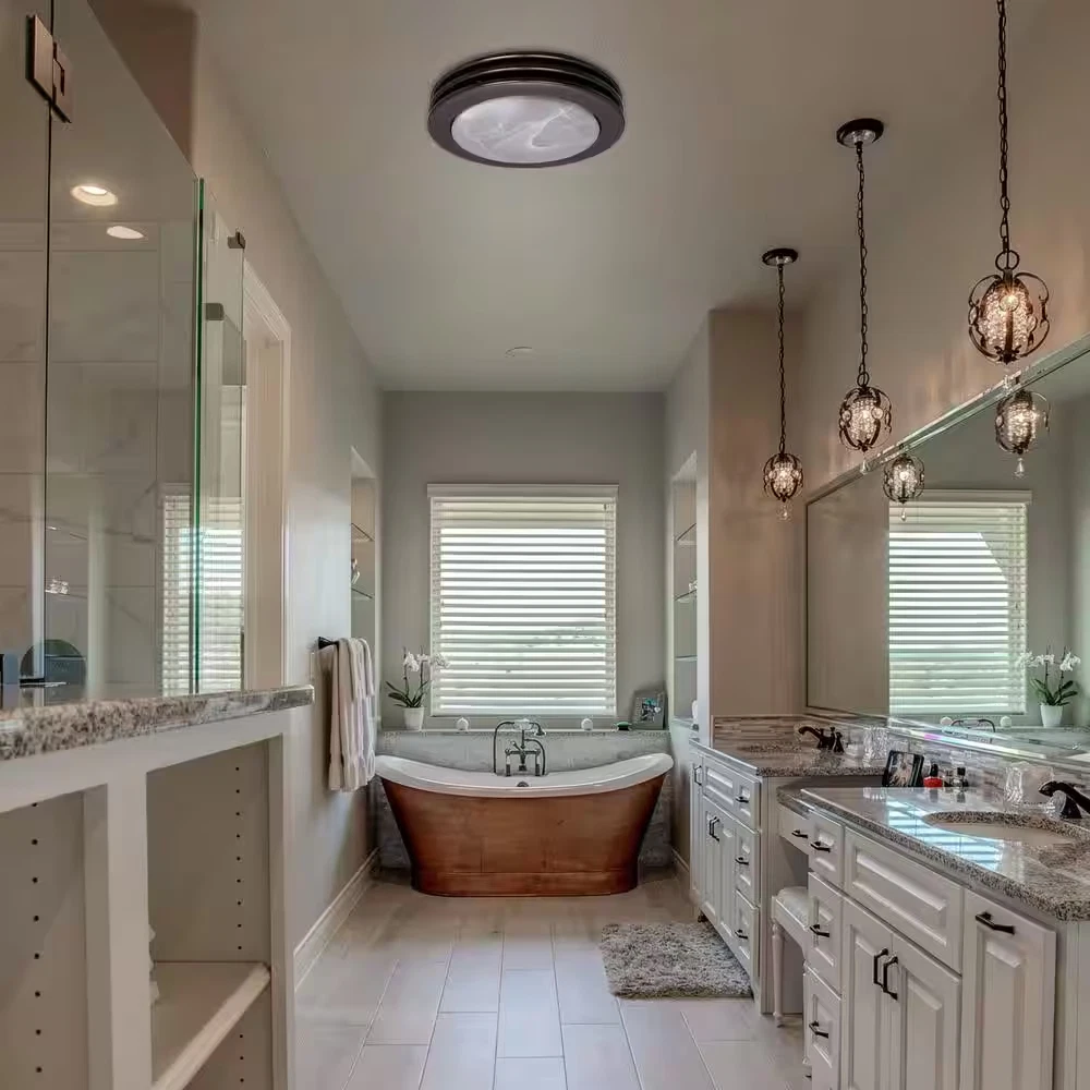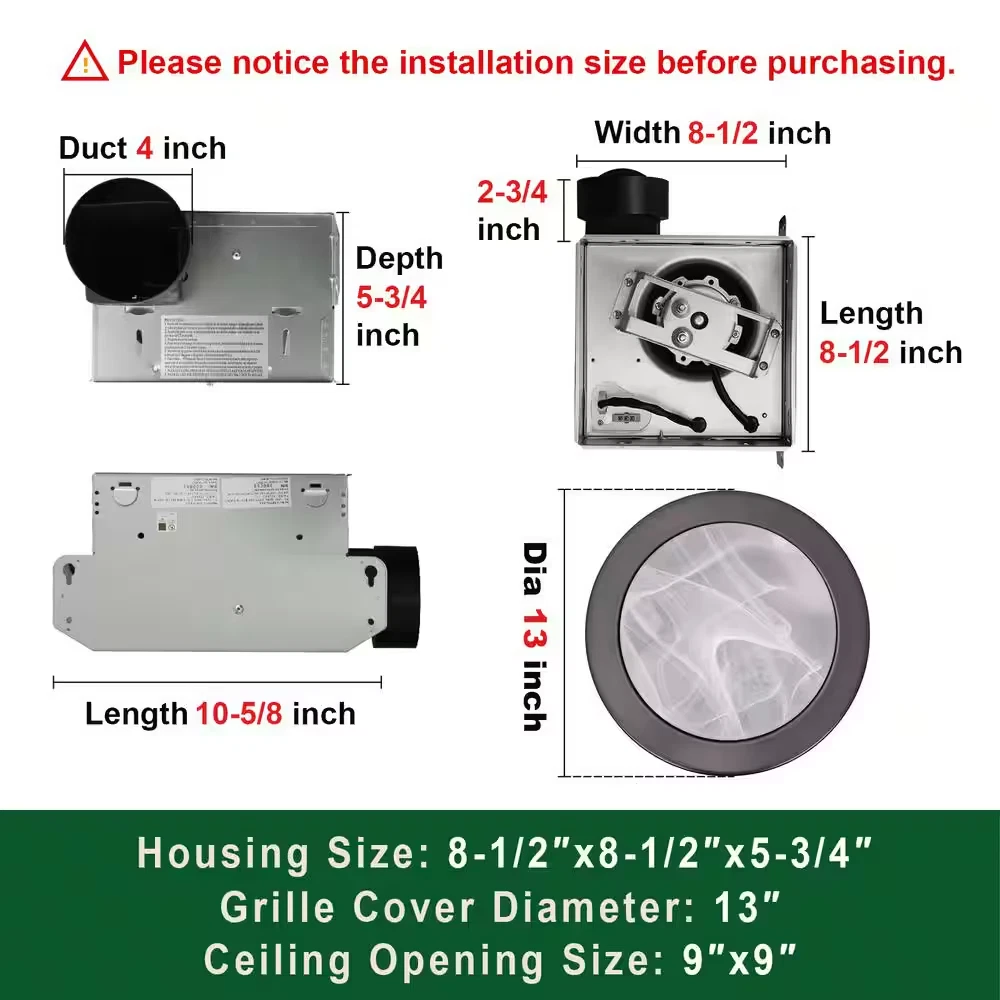 Ultra-quiet operation maintains a peaceful bathroom environment Energy-efficient LED lighting and an exhaust fan for convenience Corrosion-resistant design enables long-lasting performance Akicon decorative bathroom ventilation exhaust fan are super quiet, energy efficient and easy to install. A low operating temperature promotes improved performance and longer life. A rust-proof paint coat will keep it looking clean and new.