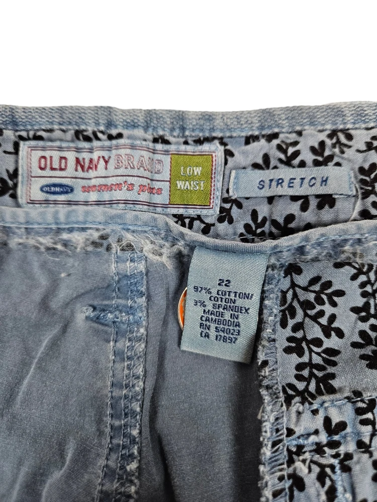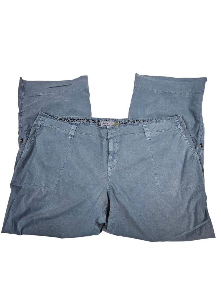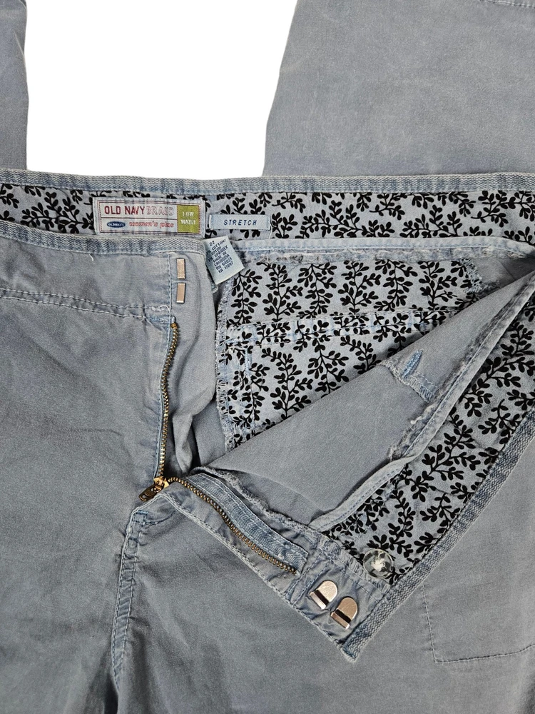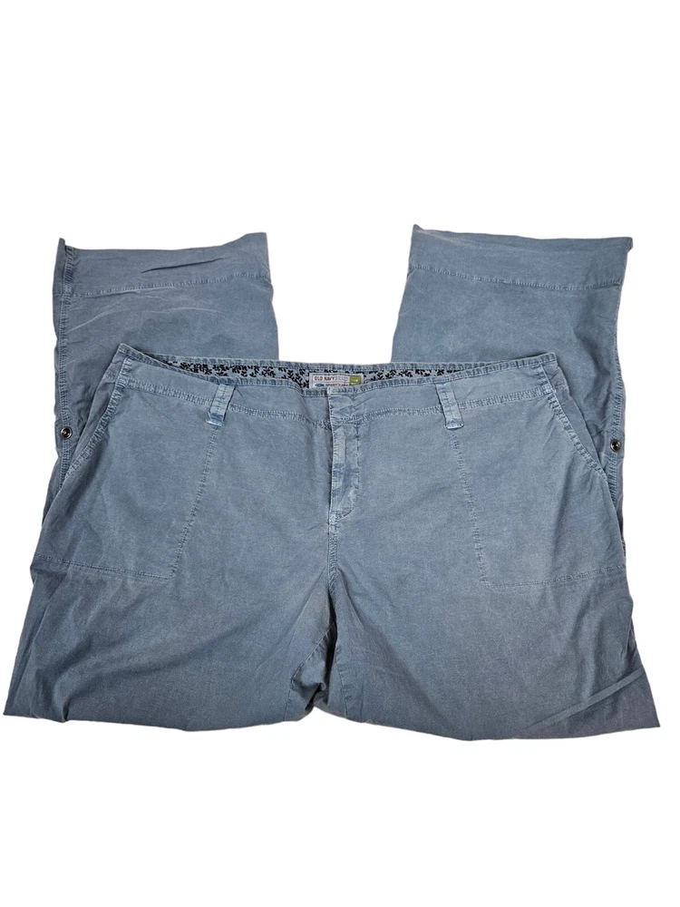 Old Navy Dusty Blue Microfiber Convertible Straight Leg Pants Size 22 Women F25 In excellent condition Old Navy Dusty Blue Microfiber Convertible Straight Leg Pants Size 22 Women's Plus. Features dusty blue microfiber convertible chino pants, straight leg, mid rise, double hook eye and zipper closure, belt loops, 2 front patch pockets, 2 back pockets with flaps, roll snap bottom cuff to convert into capri pants, coastal casual style. Measurements laying flat waist 21" front rise 10.5" hips 26" inseam 30.5" leg opening 11" Fabric cotton, spandex This is a pre-owned item that may show signs of wear. In excellent condition, no flaws.