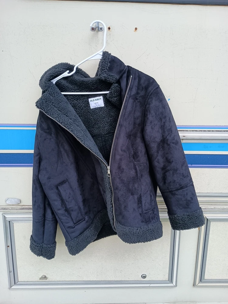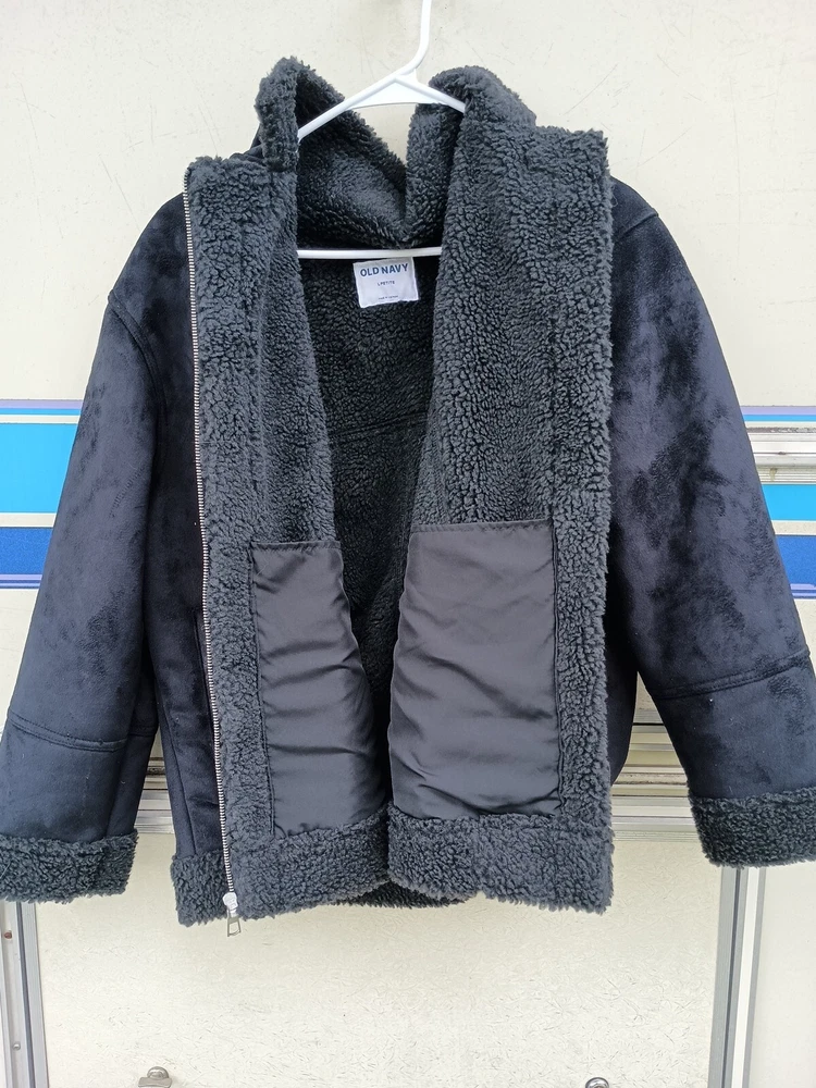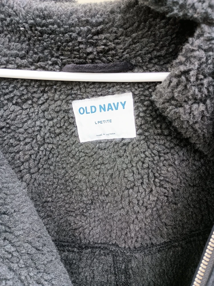 Old Navy Jacket Women's L Petite Coat Sherpa Lined Hooded Long Sleeve