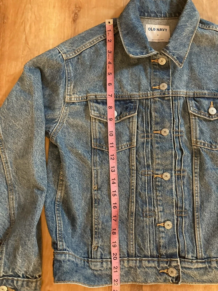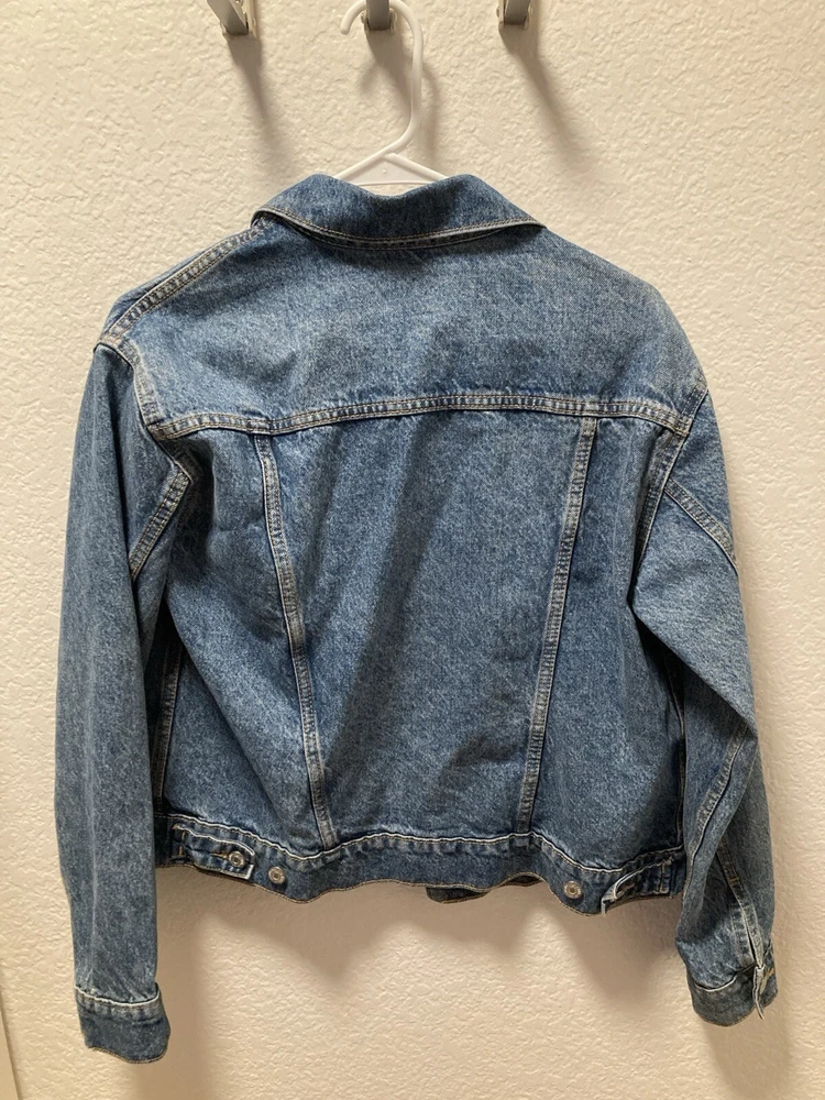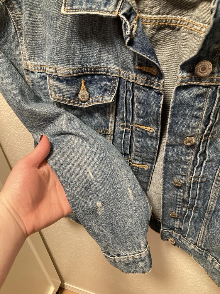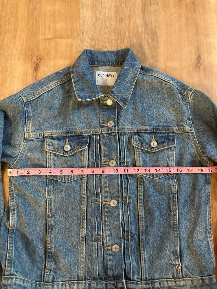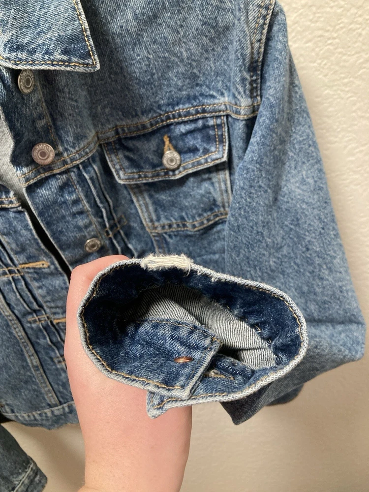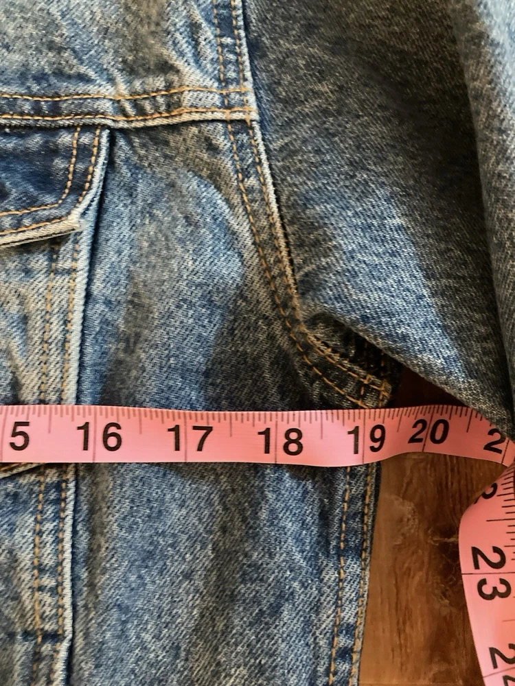EUC with no noted flaws See pics for exact measurements some light distressing and fading, see pics! Very cute and a nice heavier weight structure trucker jean jacket