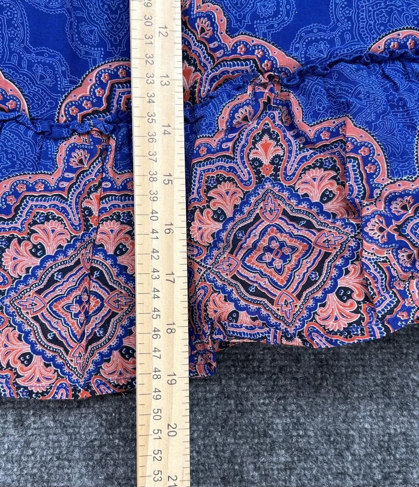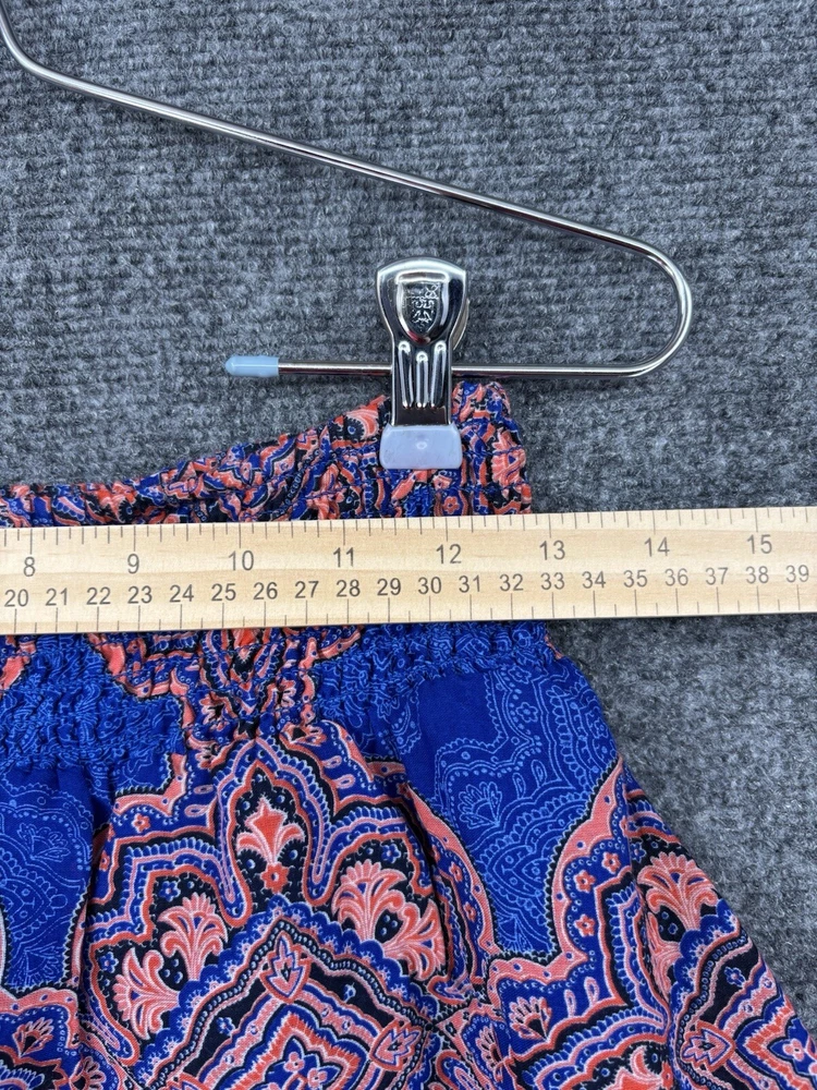 This Old Navy Women's S Marakesh Design Elastic Waist Lined Blue & Orange Short Skirt is perfect for any occasion. The skirt is made of lightweight cotton material and features a pleated and ruffle accents. The elastic waistband ensures a comfortable and secure fit, while the pull-on closure makes it easy to wear. The skirt is machine washable and perfect for summer, fall, and spring seasons. The multicolor design with blue and orange hues adds a touch of bohemian, tropical, and retro style, making it perfect for festivals, beach parties, and casual outings. The skirt is lined and has a flare style, giving it a preppy and snake-themed look. Items are PREOWNED, NWT or NWOT (NEW WITH or WITHOUT TAGS). Items are checked for flaws and if applicable are pictured. Items are well cared for and stored indoors. Please review and compare the measurements we provide in the photos. Measurements are approximate and in flat inches. Please keep in mind many items are preowned and may not reflect the manufacturer's tag/sizing and may have shrunken. We ship quickly. 30 day returns available. Please contact with any questions. Thank you for your business and remember to save our store info as we add new items often. God Bless Mdubs Clothing