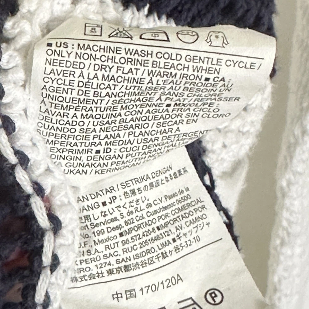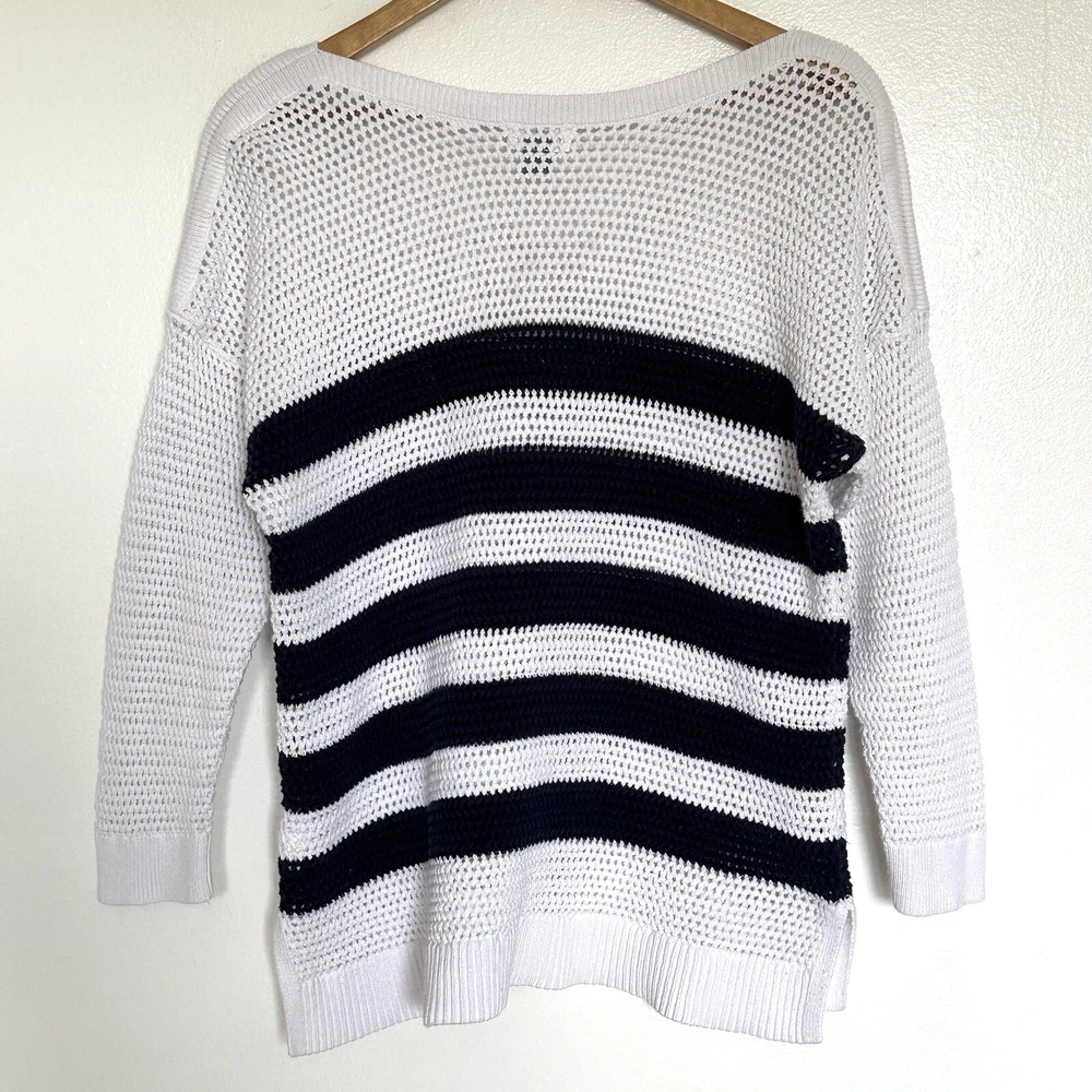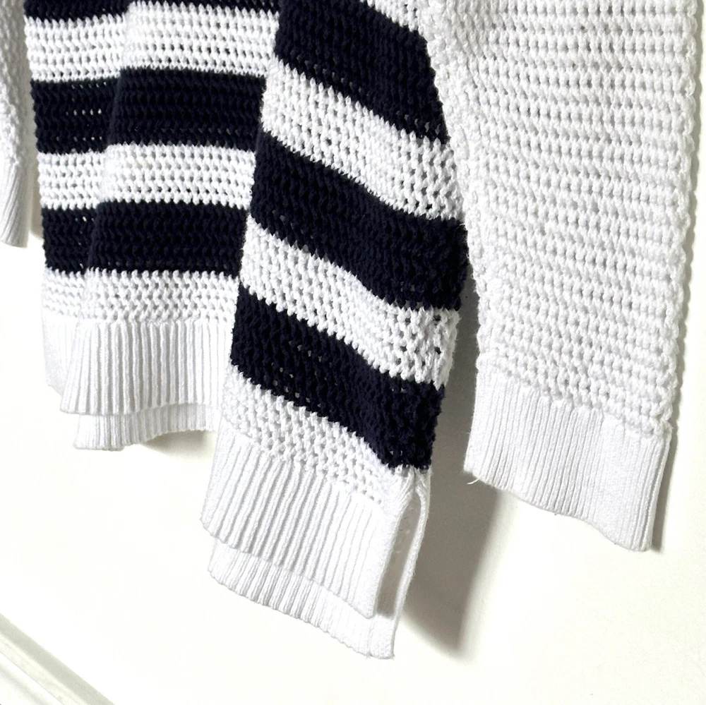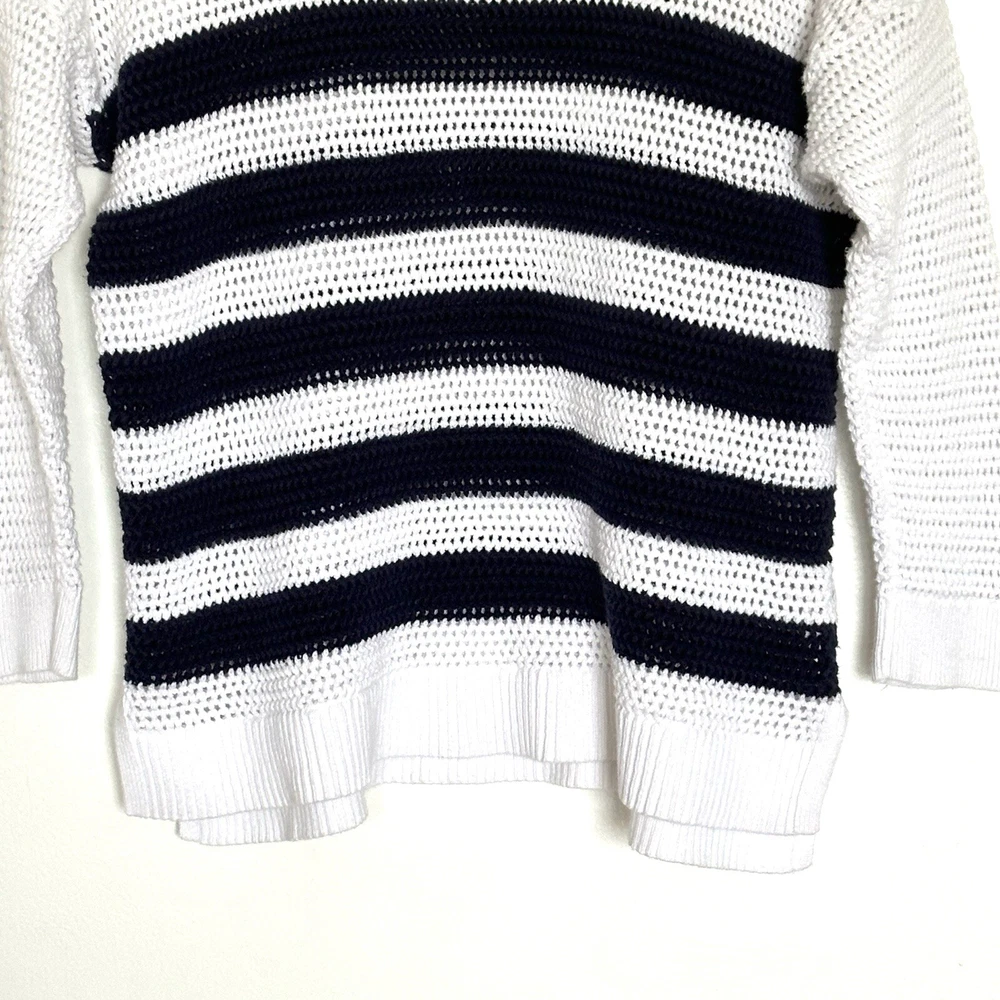 Old Navy Womens Sweater XXL Blue White Striped Cotton Open Cable Knit 3/4 Sleeve