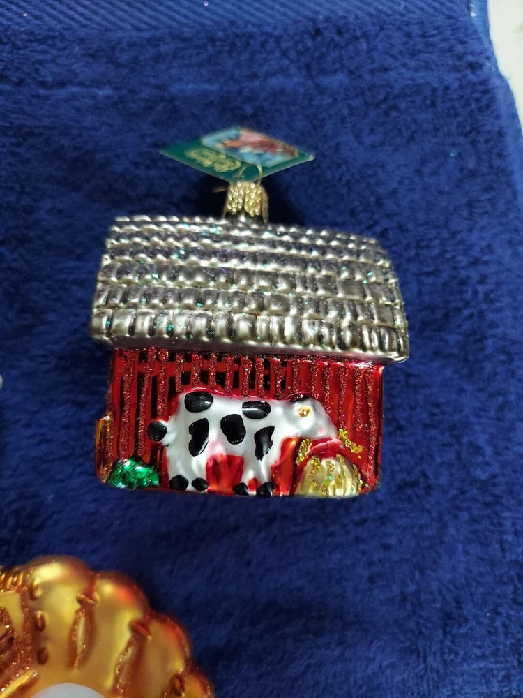Old World Christmas Ornament, Baseball Mitt. House, Barn