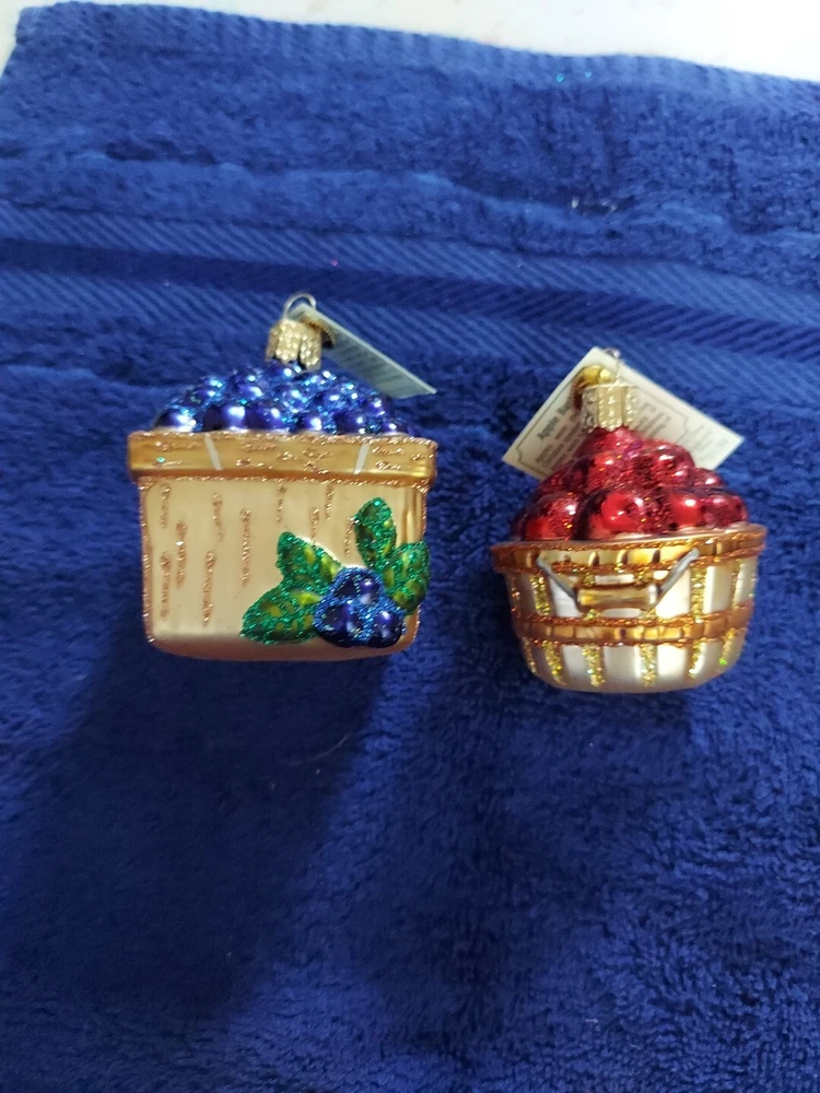 Old World Christmas Ornaments, Blueberry, Apple Baskets (C)