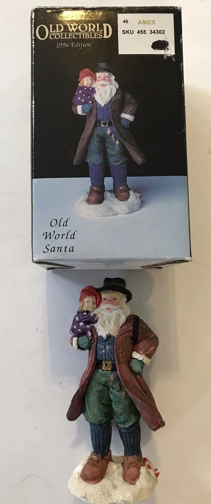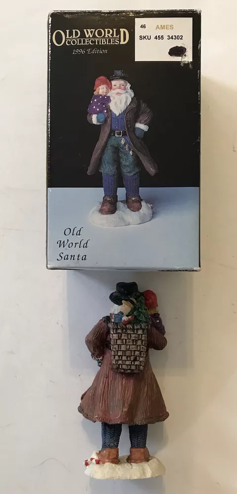 This Old World Collectibles hand-painted porcelain Santa figurine is a unique addition to any Christmas decor. Measuring 6 inches in height and 3 inches in width, this asymmetrical figurine features an all-over painted finish and an etched glassmaking technique. It is perfect for any room and suitable for any occasion, especially Christmas. This collectible figurine is from the late 20th century, manufactured in China in 1996 by Bradford Novelty Co. It is an original and handmade piece, making it a one-of-a-kind item for any collector. The figurine comes in a box and does not require any additional parts. Clean it with a damp cloth for long-lasting beauty.