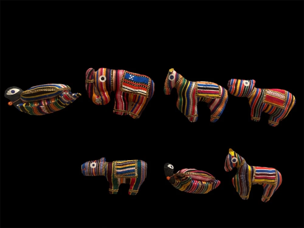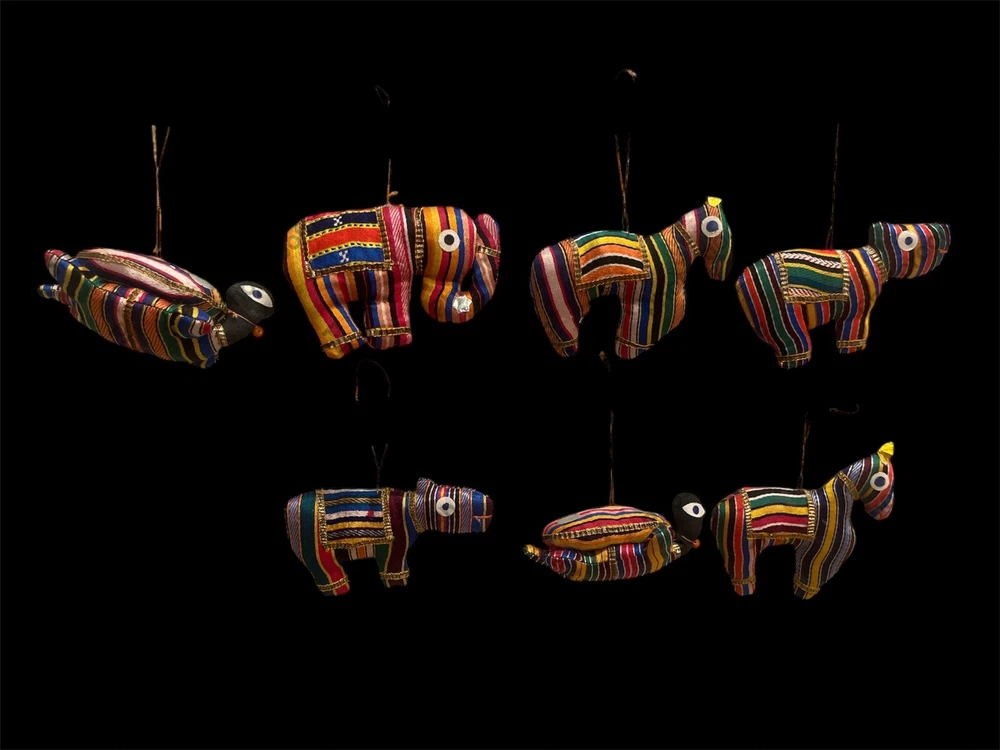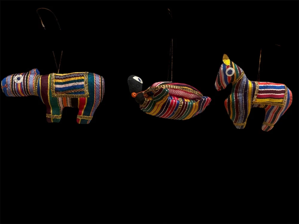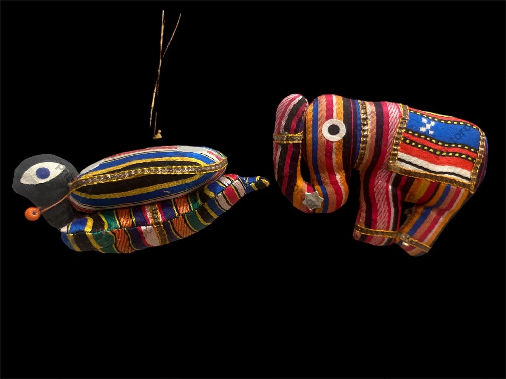Add a touch of elegance and charm to your Christmas tree with these Old World Fabric Turtle Elephant Horse Colorful Christmas Tree Ornaments. Crafted from high-quality silk, these handmade ornaments feature a unique pattern of African animals, including a turtle, elephant, and horse. The multicolor design adds a playful touch that will delight all who see them. This set includes seven stunning ornaments that will make a great addition to your collection. The Old World brand is known for its exceptional quality and attention to detail, making these ornaments a must-have for any collector or lover of animals. Bring a touch of whimsy to your holiday decor with these delightful ornaments.