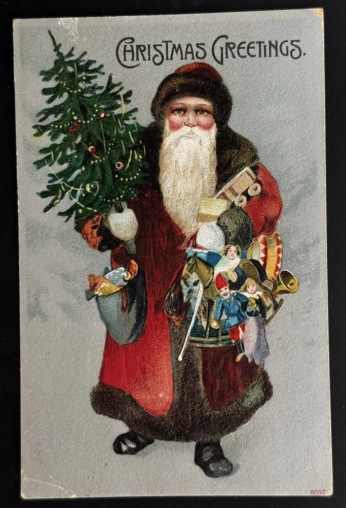 Old World Santa Red Brown Robe Hat Holding Tree Toys 1908 Troy NY Postcard Shipping Options: For postcards under $20, you have two choices: 1-- Standard Envelope ($0.99) - Ships in a soft envelope with light card protection. 2-- USPS Ground Advantage ($3.99) - Ships in a rigid mailer with stiff cardboard for extra protection. - Combined Shipping Available - If you purchase multiple items, extra shipping costs can be refunded. Please choose your preferred shipping option at checkout.