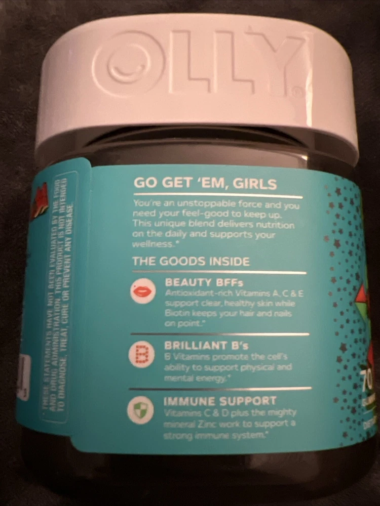 Olly TEEN GIRL MULTI Vitamins A C D E Bs Biotin & Zinc Gummies BERRY MELON, 70ct. EXP 04/25