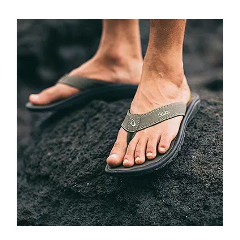 DESIGN: Water-resistant synthetic straps Soft, quick-dry jersey knit lining ideal for water-worthy adventures Laser-etched footbed logo and embroidered hook logo on the toe post overlay Floats in water IN-SHOE COMFORT: Soft nylon toe post promotes all day comfort Anatomically contoured footbed for comfort and support DURABILITY & TRACTION: Non-marking rubber outsole with razor siped edges for extra grip on wet surfaces Brand : OluKai Country of Origin : Imported