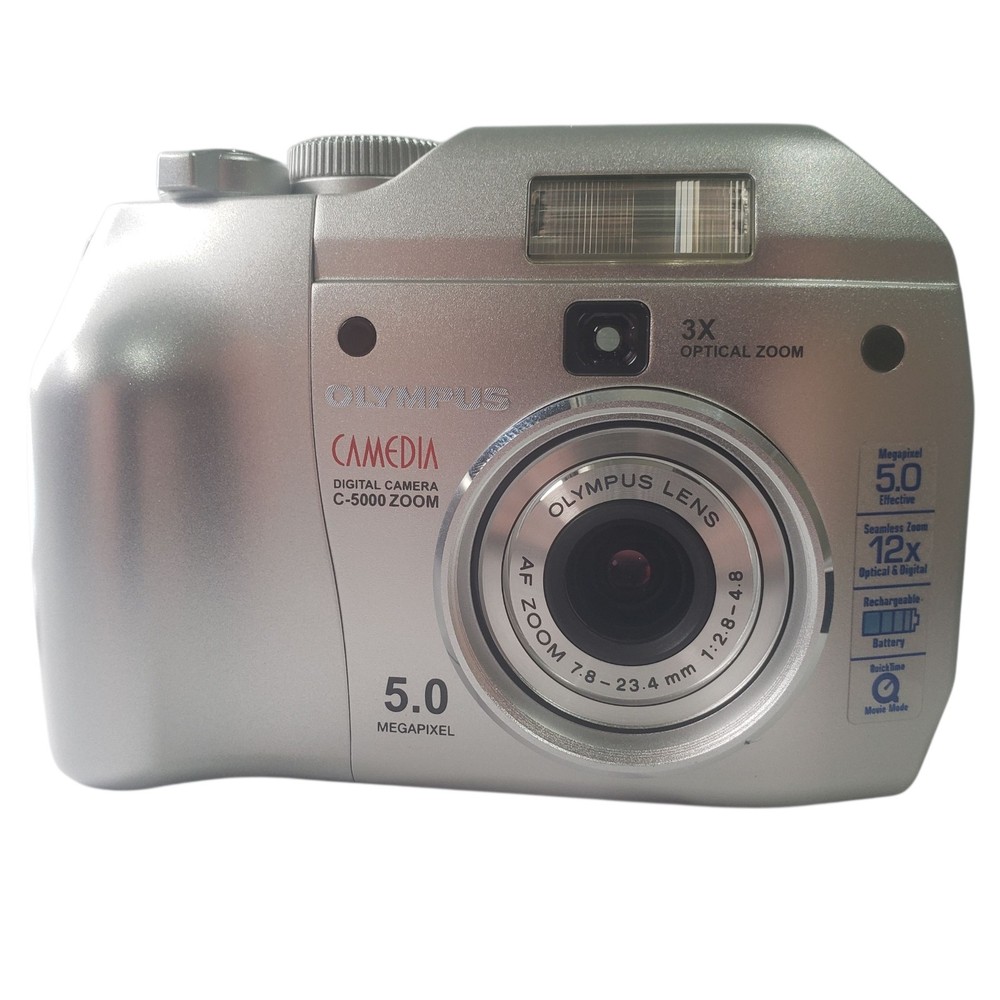 Capture life's moments with the Olympus Camedia C-5000 Zoom, a user-friendly digital compact camera that combines convenience with powerful performance. Boasting a 5.0-megapixel maximum resolution, this camera ensures your photographs are crisp and full of detail. The grey finish is sleek and versatile, making it a stylish choice for any photography enthusiast. Enjoy the flexibility of a 3x optical zoom and a 4x digital zoom, allowing you to get closer to your subjects without sacrificing image quality. The Olympus C-5000 comes equipped with USB connectivity for easy image transfer and a rechargeable Lithium-Ion battery with a charger, ensuring you're always ready to snap that perfect shot.